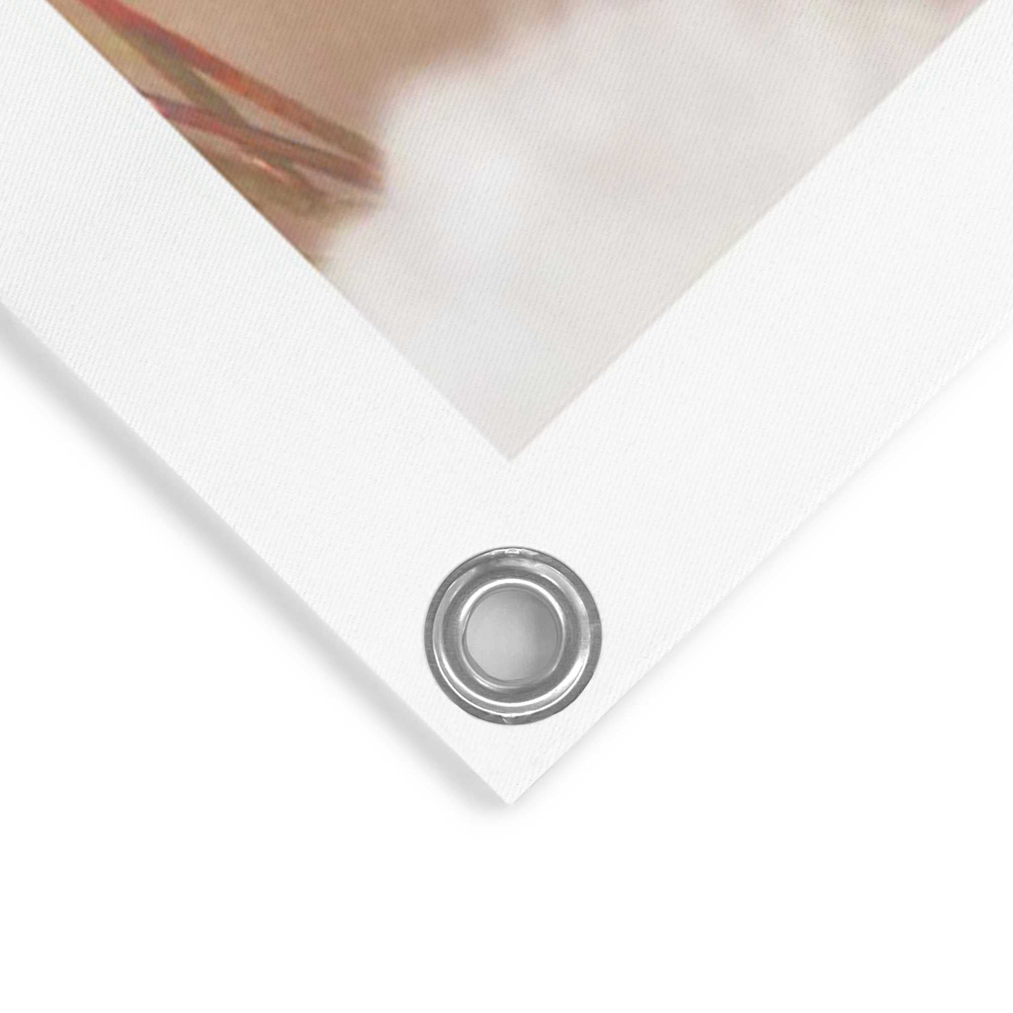 - De tuinposter heeft 4 ringen en kan worden bevestigd met hoekhaakschroeven of Tesa dubbelzijdige buiten tape.