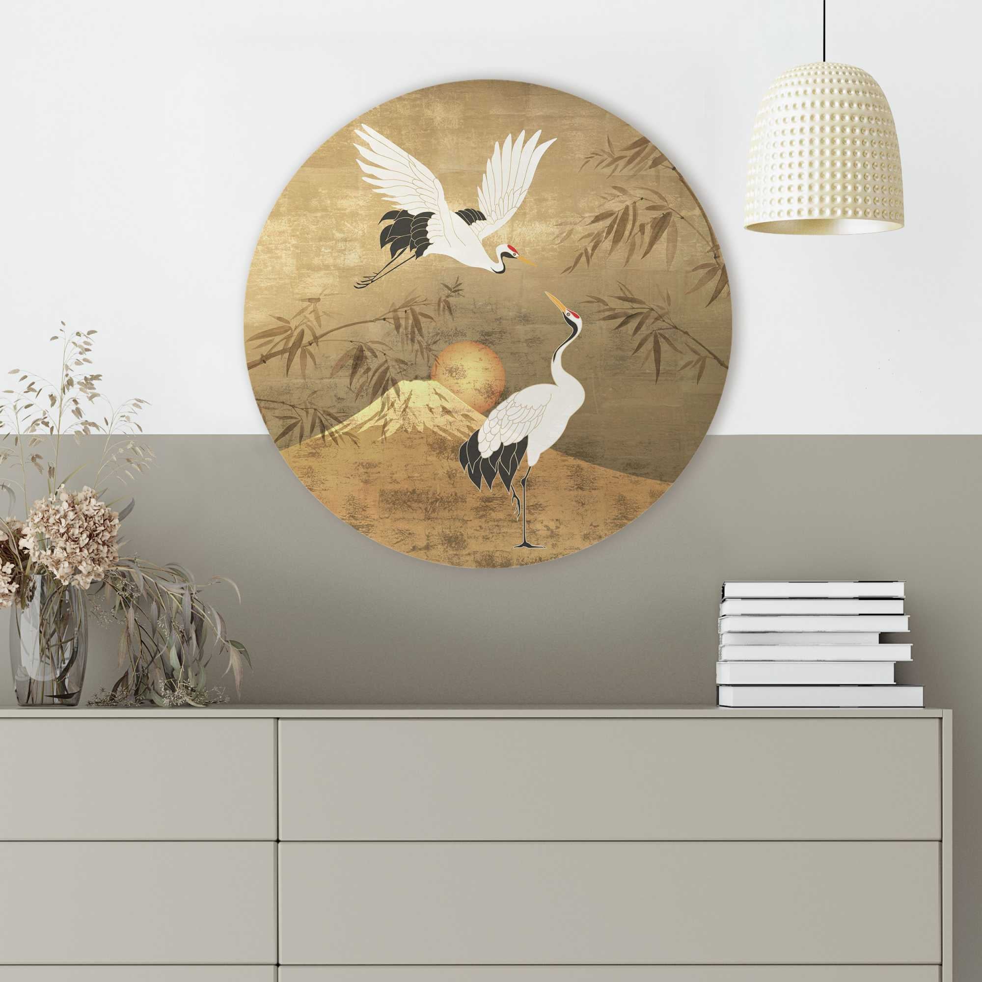 Reinders - Japanese Cranebirds - Glasschilderij Ø 50 cm