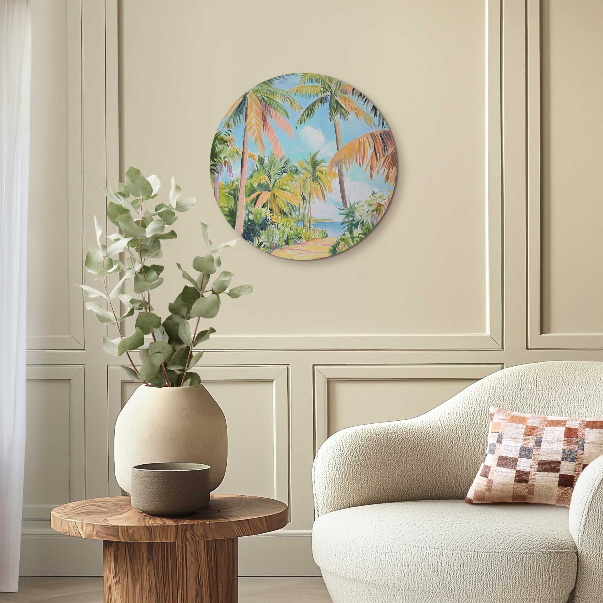 Reinders - Pad tussen de palmbomen - Glasschilderij Ø 50 cm - Groen