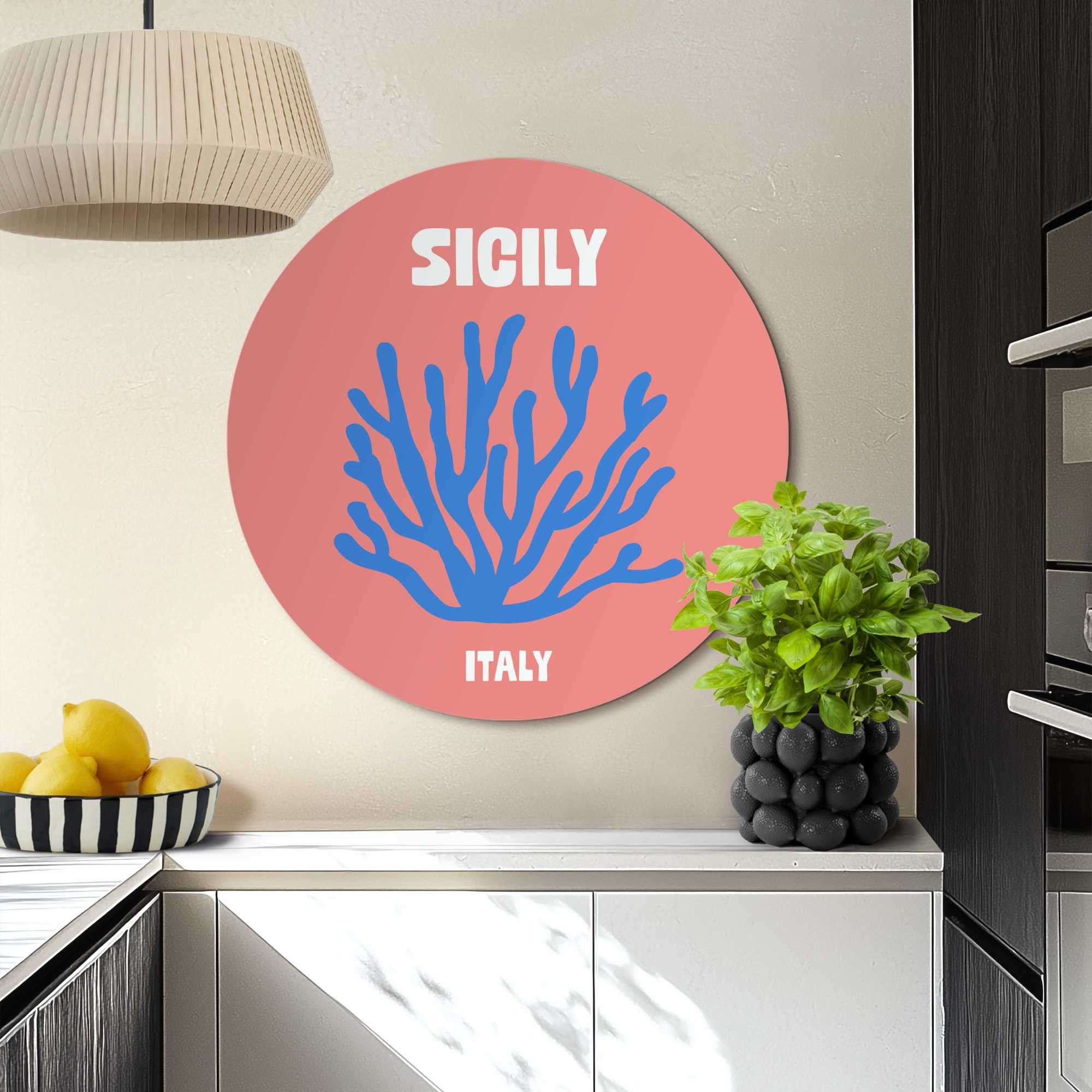 - De witte letters SICILY boven en ITALY onder maken het geheel tot een fris en zomers eerbetoon aan deze Italiaanse parel