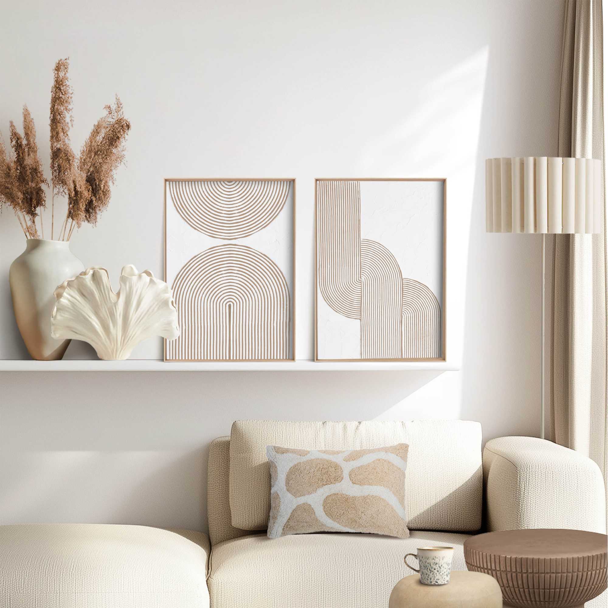 Reinders - Taupe bogen - Abstracte wanddecoratie set met structuur 30x40 cm - Beige