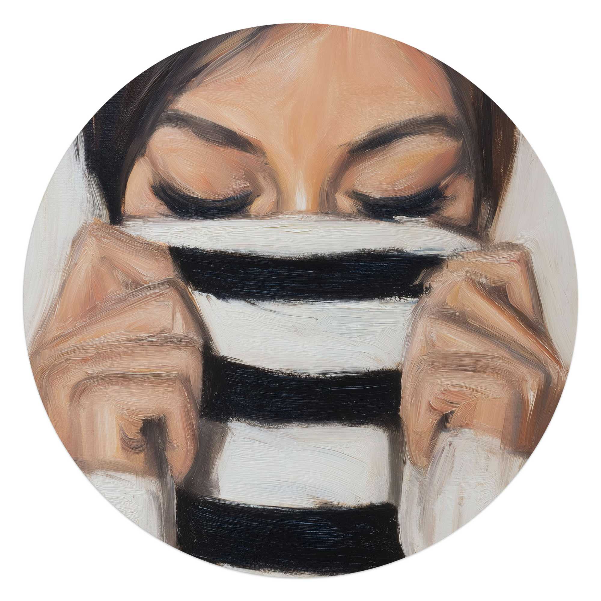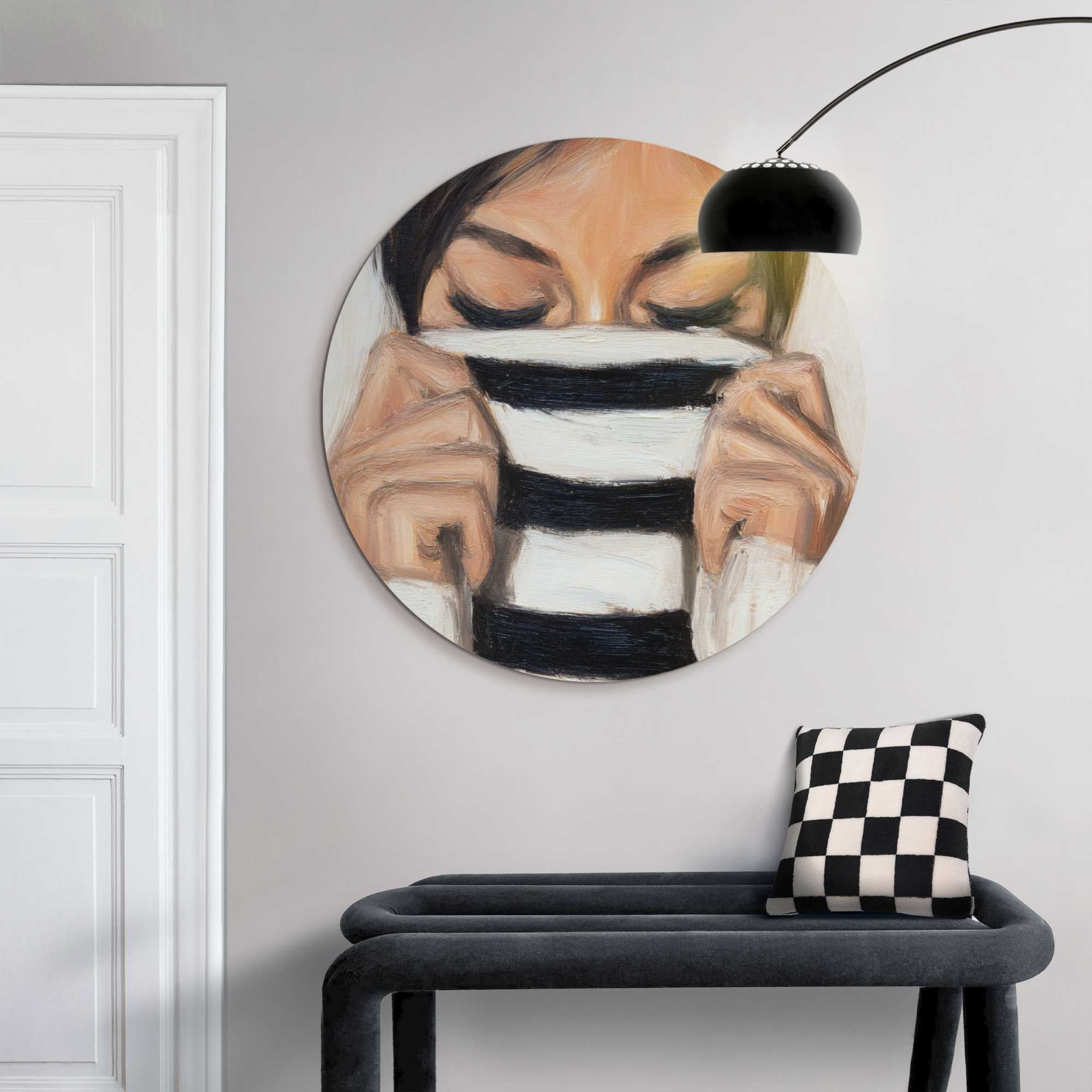Reinders - Verstopt achter de trui - Glasschilderij Ø 70 cm - Zwart-Wit