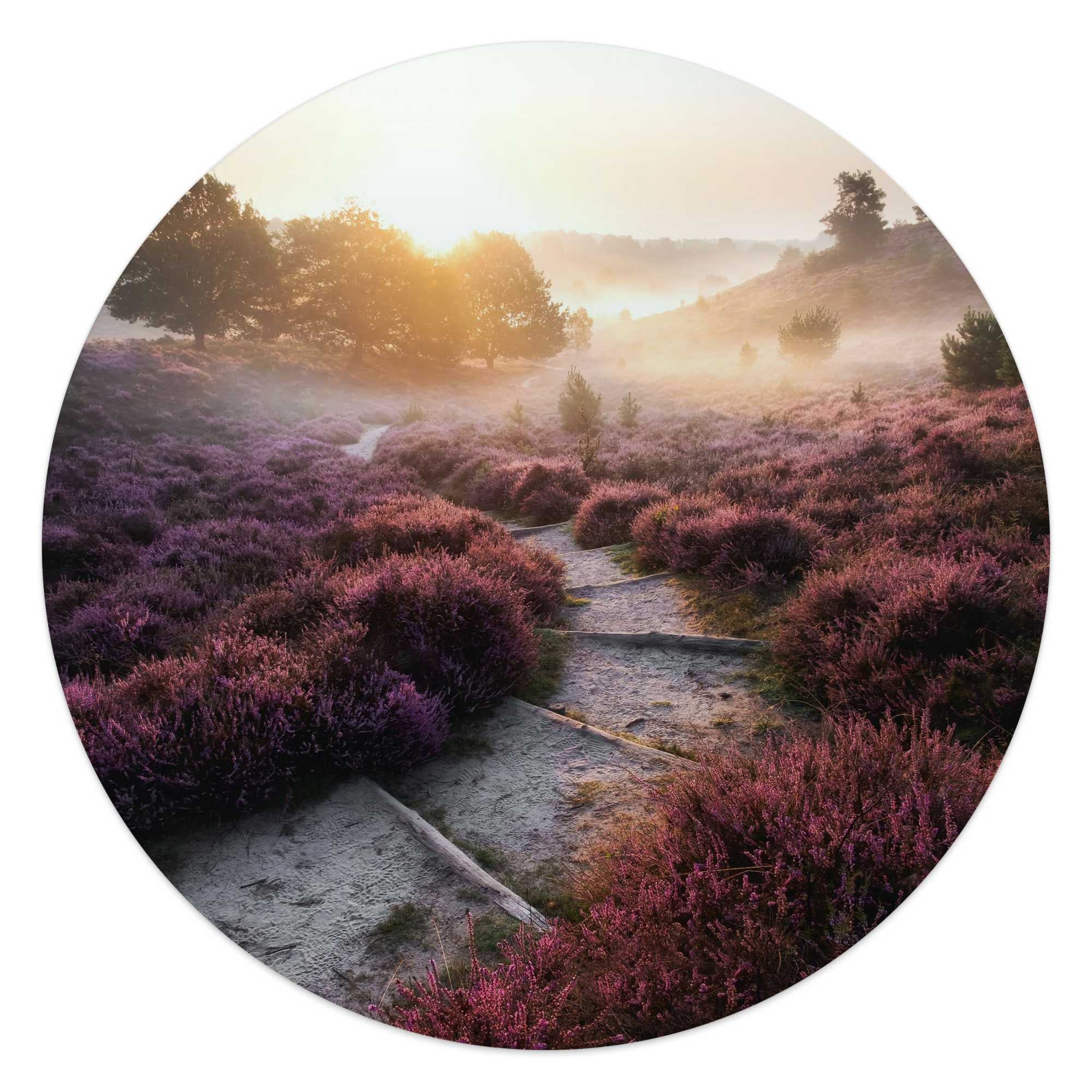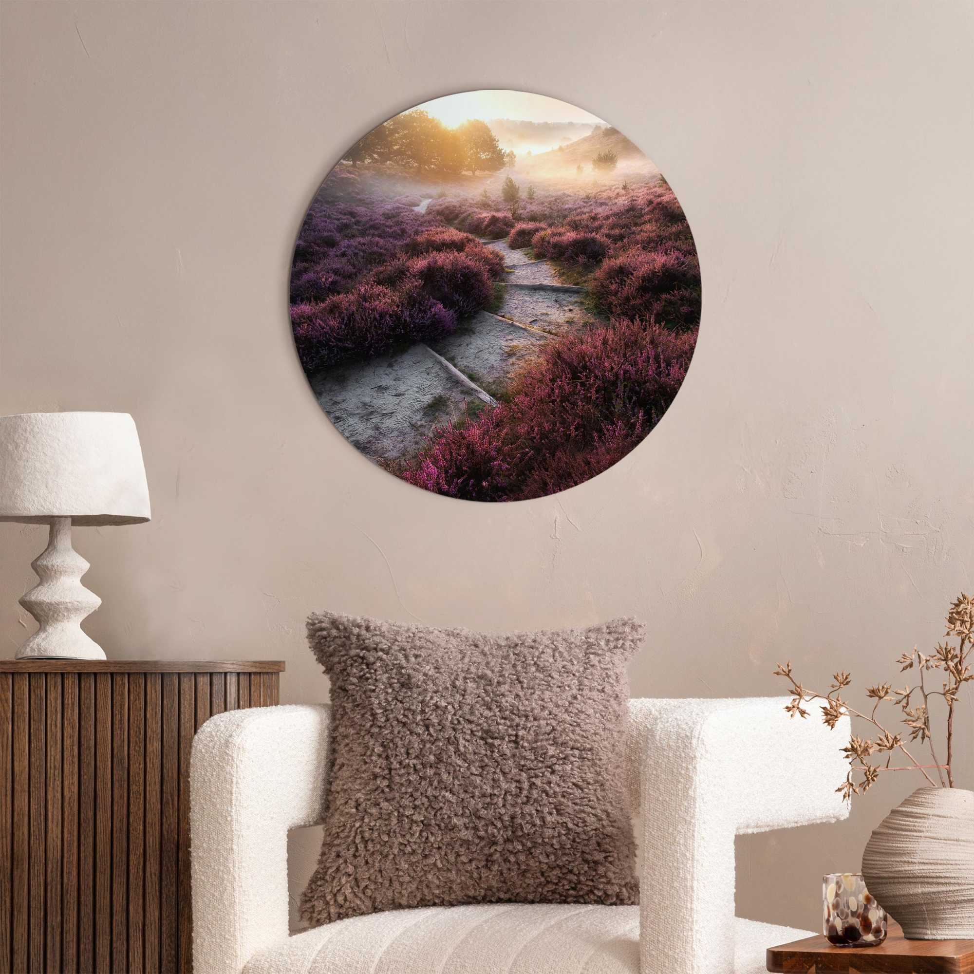 Reinders - Wandelpad langs de heide - Glasschilderij Ø 50 cm - Paars