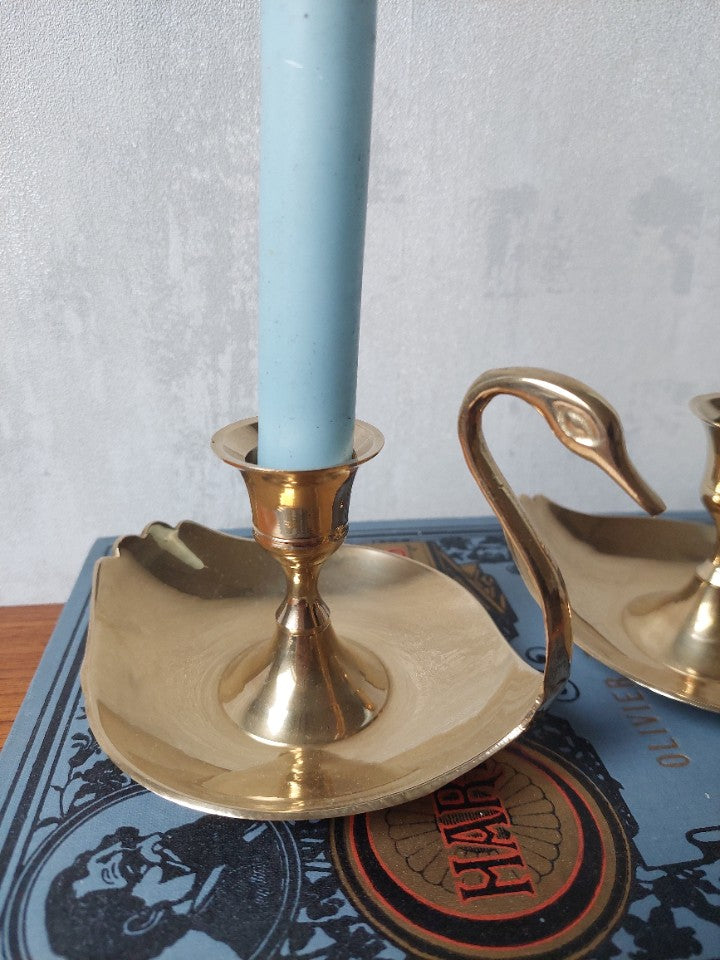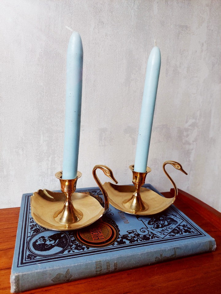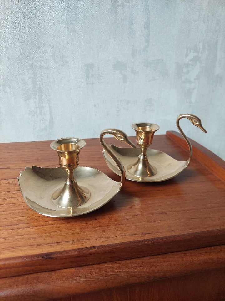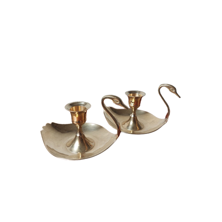 Reliving Set Messing Kaarsenhouders Zwaan Kerst