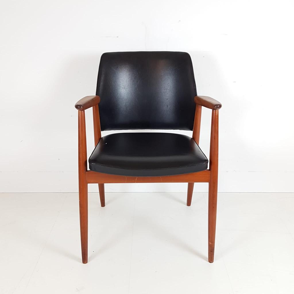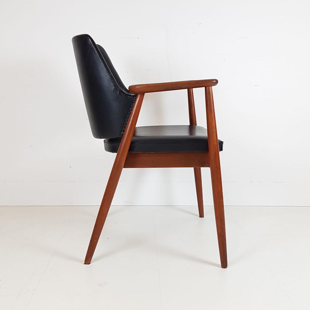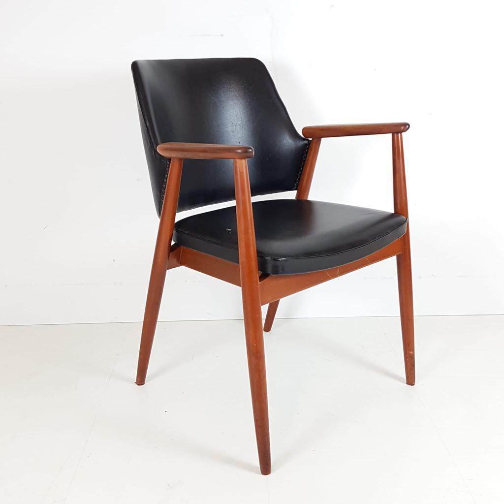 Reliving Vintage Teak Houten Stoel Zwart Skai