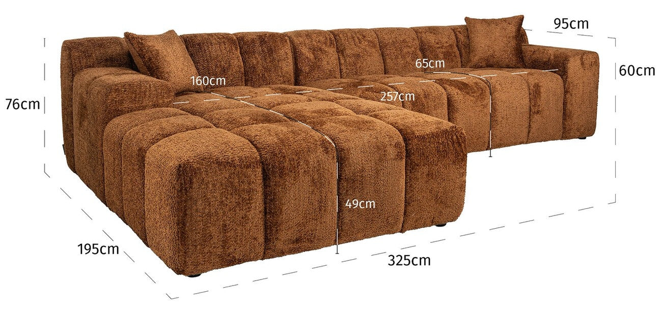 Richmond Interiors Cube 3-Zits Bank+Chaise Longue Links Lovely Kaneel