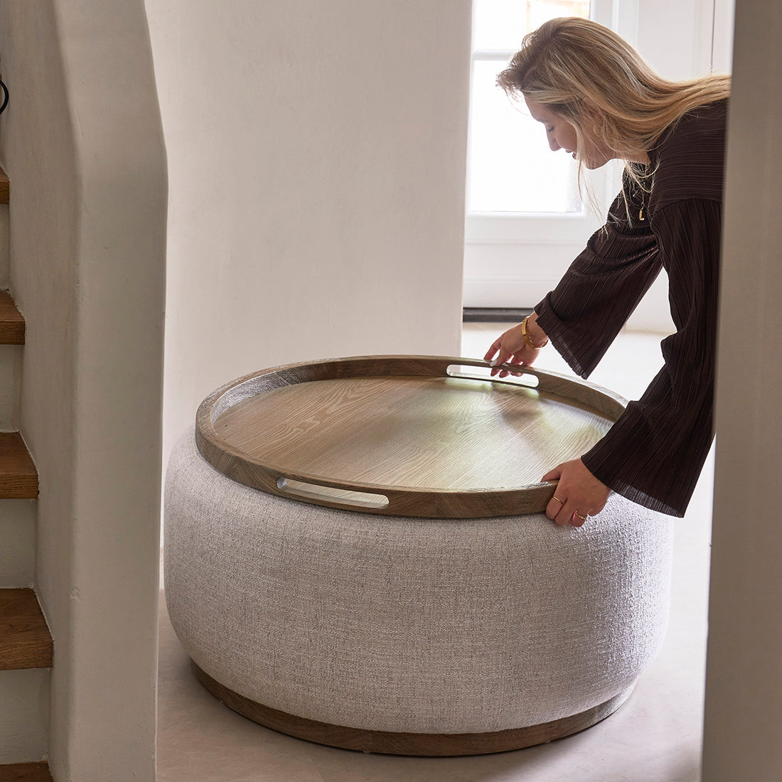 - Met zijn veelzijdigheid kan deze salontafel ook dienen als voetensteun of poef – ideaal voor een avond met vrienden of voor persoonlijke ontspanning na een drukke dag.