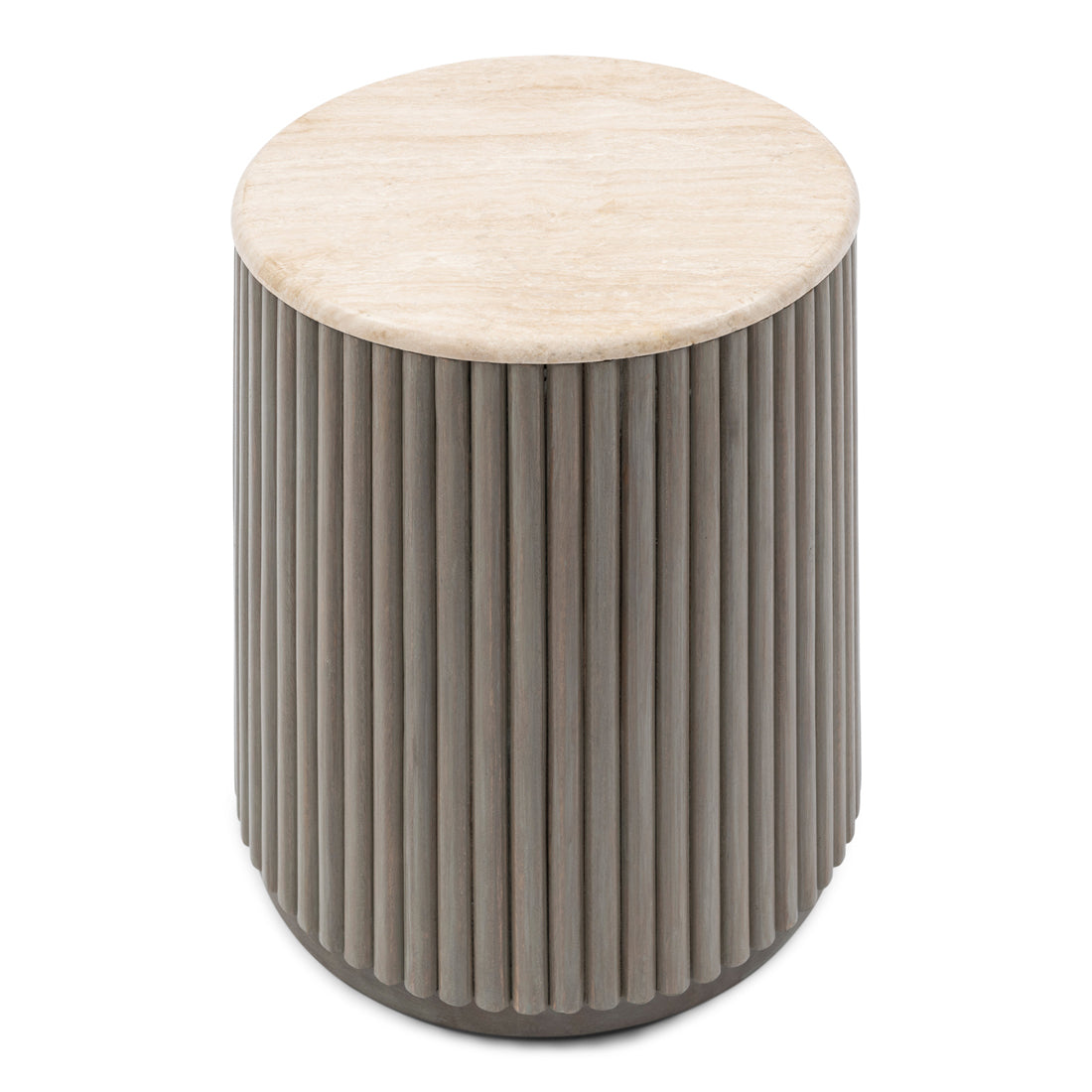 Rivièra Maison - Bijzettafel Villanova, natuurlijke tint, T28 - Travertine en Mangohout, hoogte 53 cm