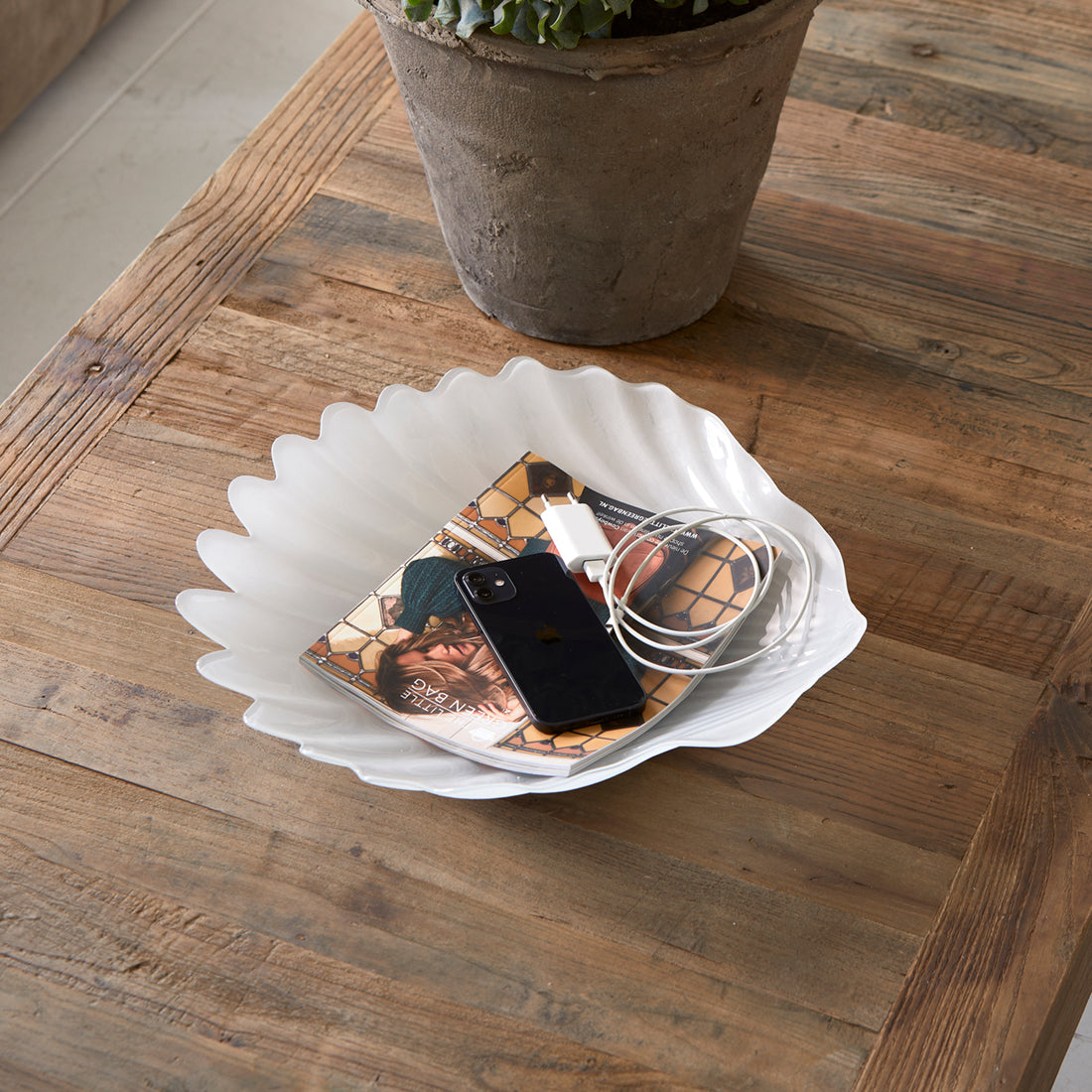 - Een mooie schelp van mat glas: de RM Beach Shell Serving Plate.
