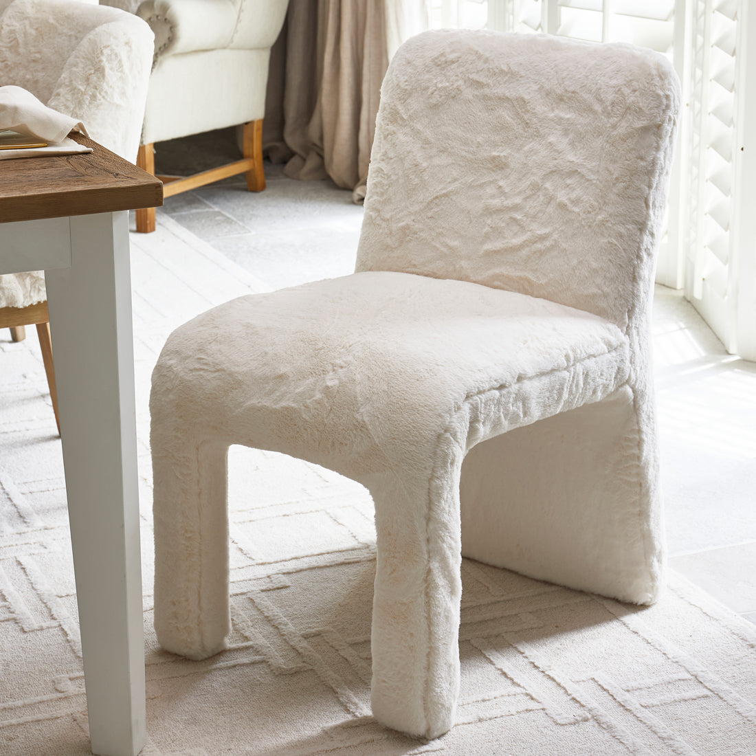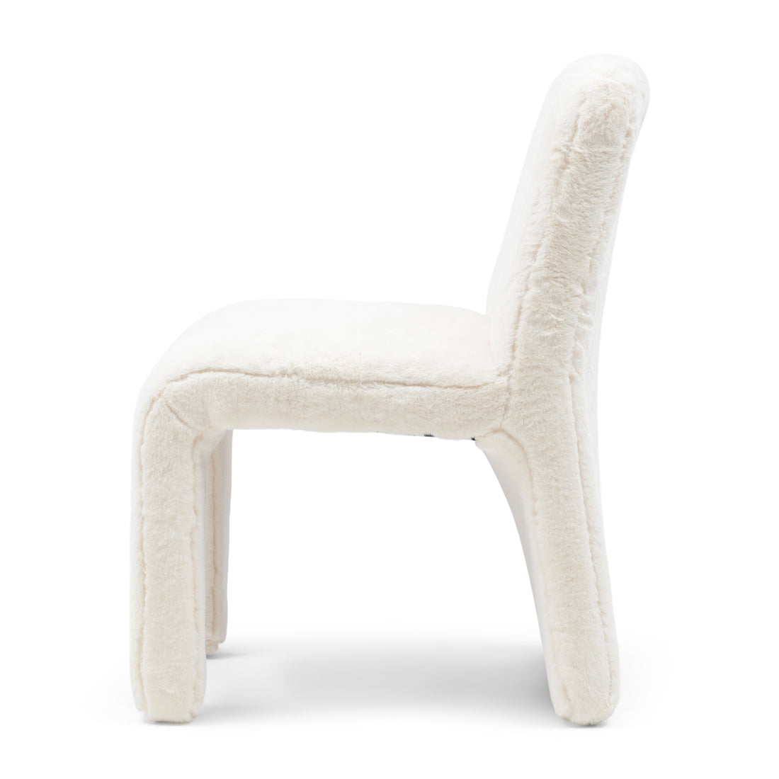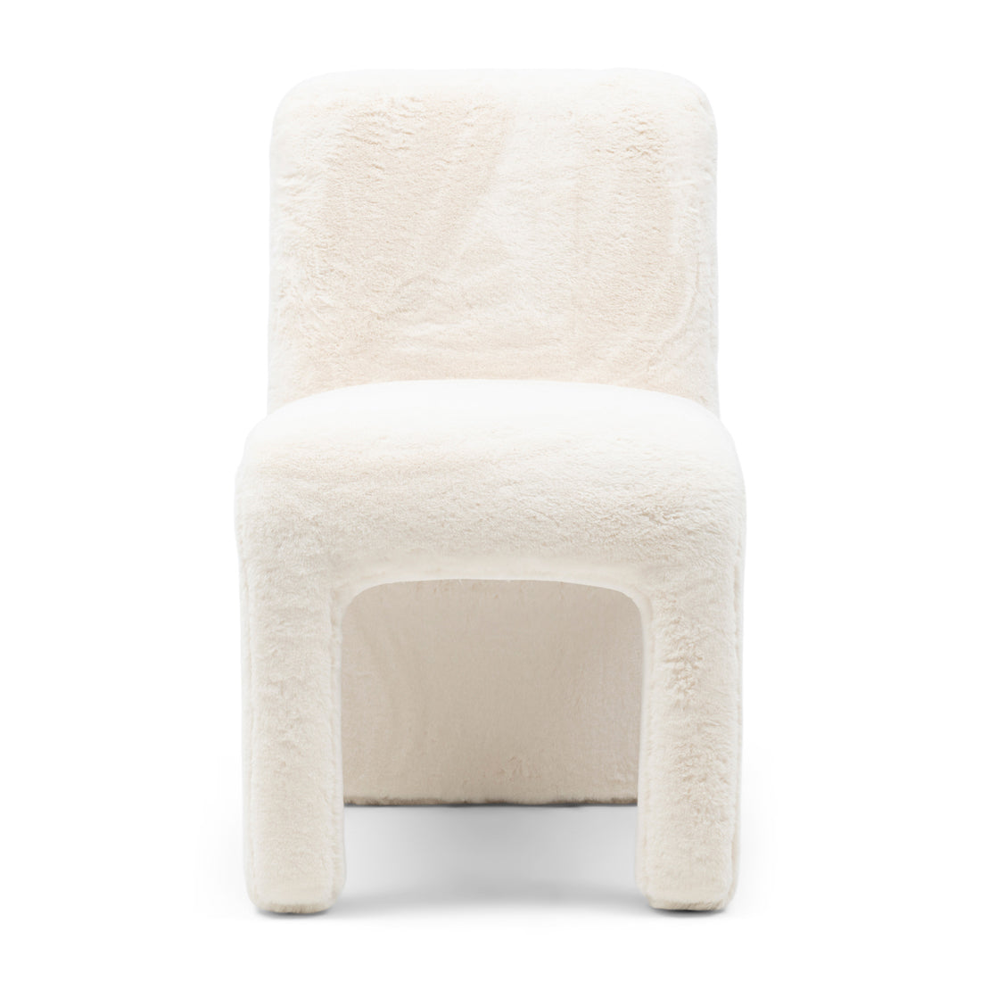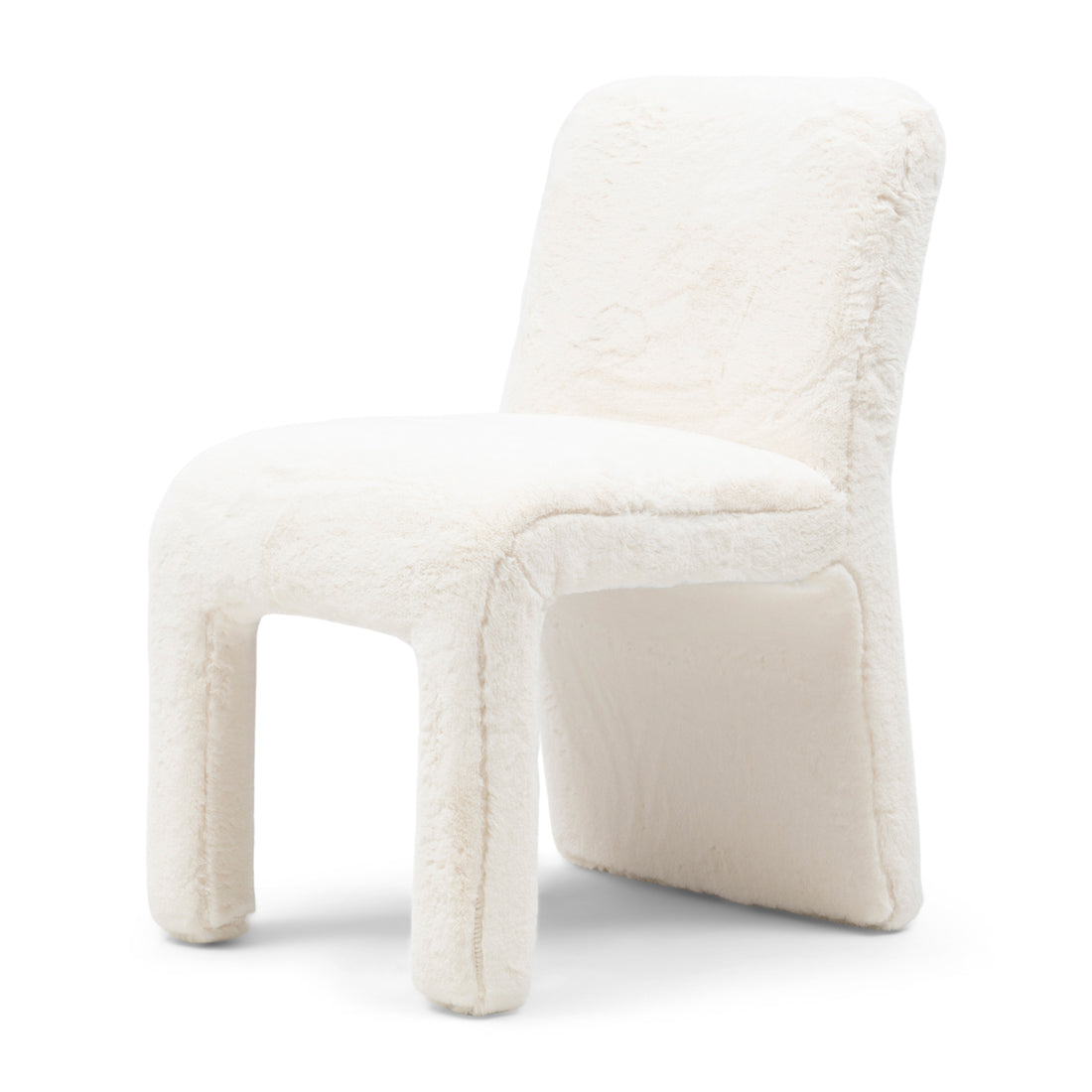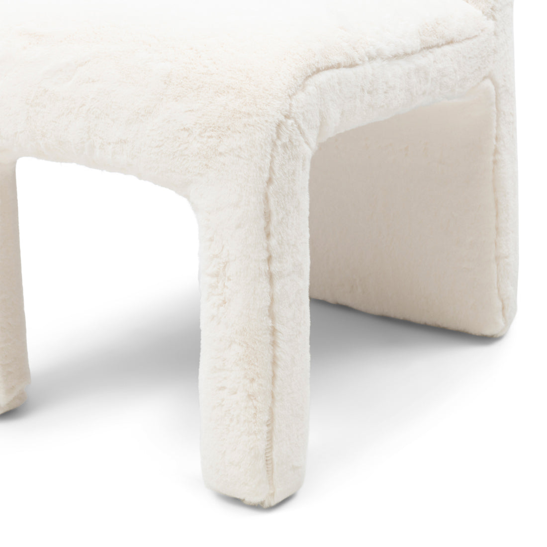 - De Callaghan eetkamerstoel biedt een unieke combinatie van comfort en stijl. Bekleed met zachte faux fur stof, inclusief de poten, voegt deze stoel een winterse sfeer toe aan je interieur. Het ontwerp met twee voorpoten en een rugleuning die doorloopt in een brede achterpoot zorgt voor een modern silhouet. De diepe zitting biedt extra comfort, waardoor de Callaghan ideaal is voor lange diners en gezellige avonden.