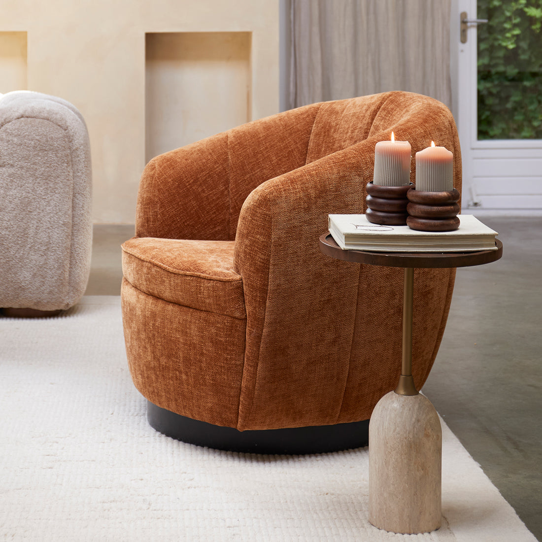 Rivièra Maison - Elegante Draaistoel in M94 - Maroon Brown van Polyester en Rubberwood, 87x81x82 cm