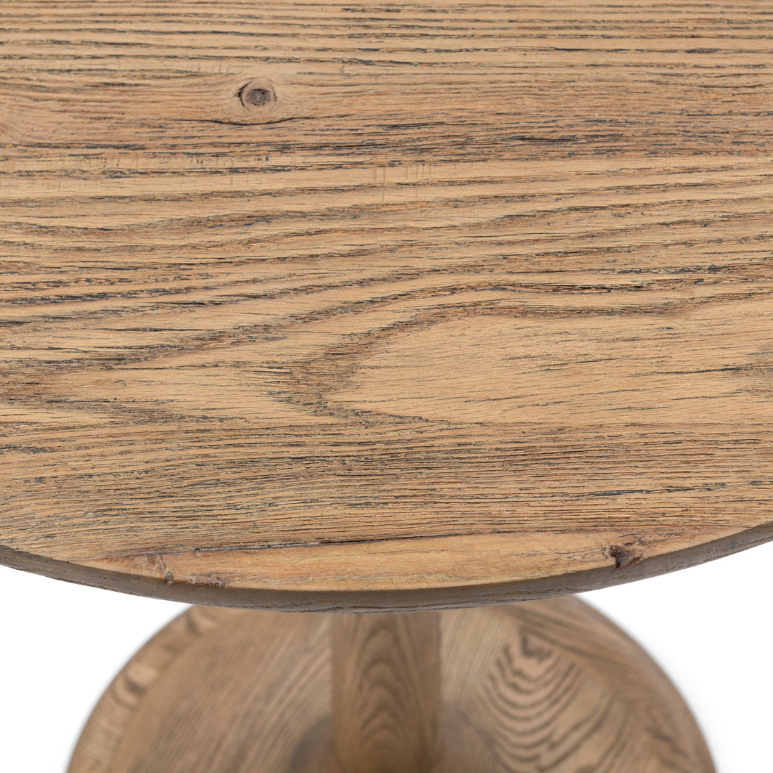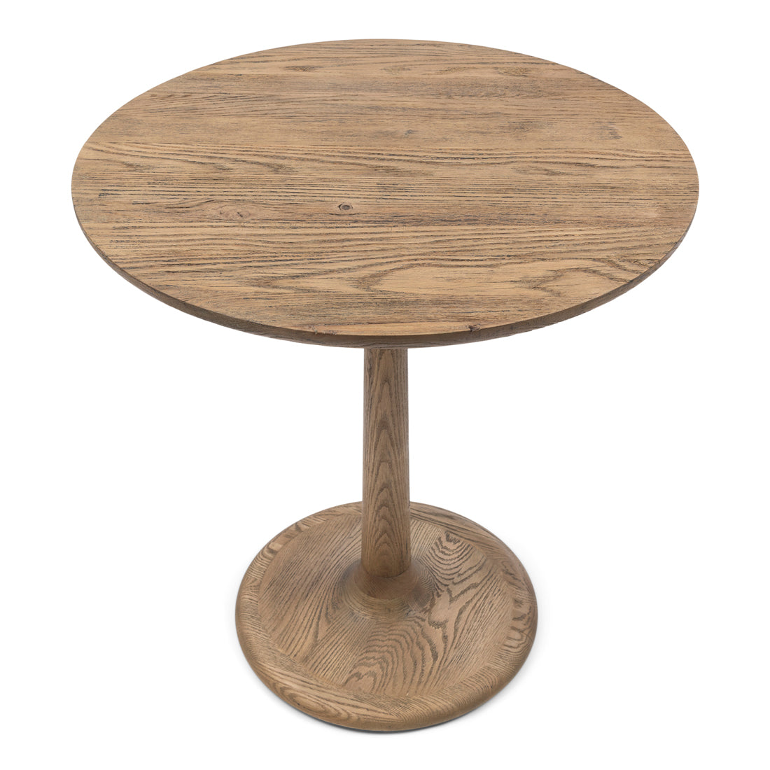 - Deze ronde bistrotafel, gemaakt van teruggewonnen eikenhout, combineert een strak en modern design met een rustieke charme. Perfect voor bijvoorbeeld een koffiehoekje of als bijzettafel. Kortom: een mooie toevoeging aan elk interieur.