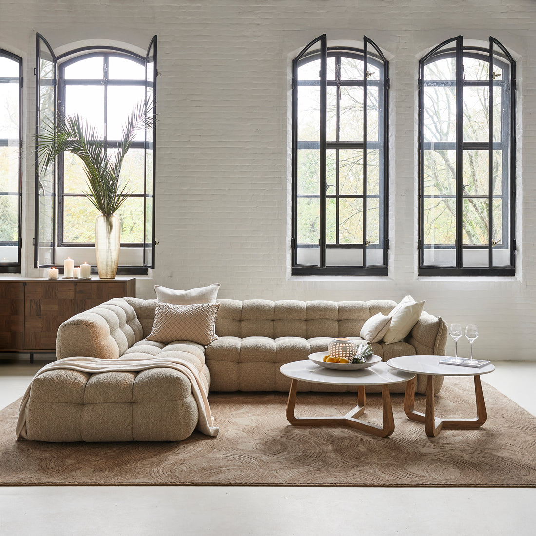 Rivièra Maison - Elegante ronde salontafel in crème marmer en eikenhout met afmetingen 42 cm hoog