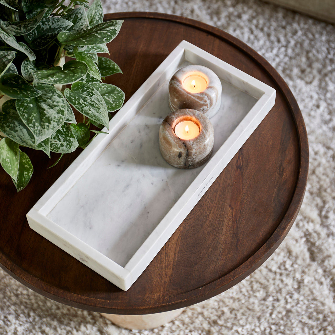 Riviera Maison kaarsenplateau Wit - Sessari Marble - Marmer (ØxH) 30x4