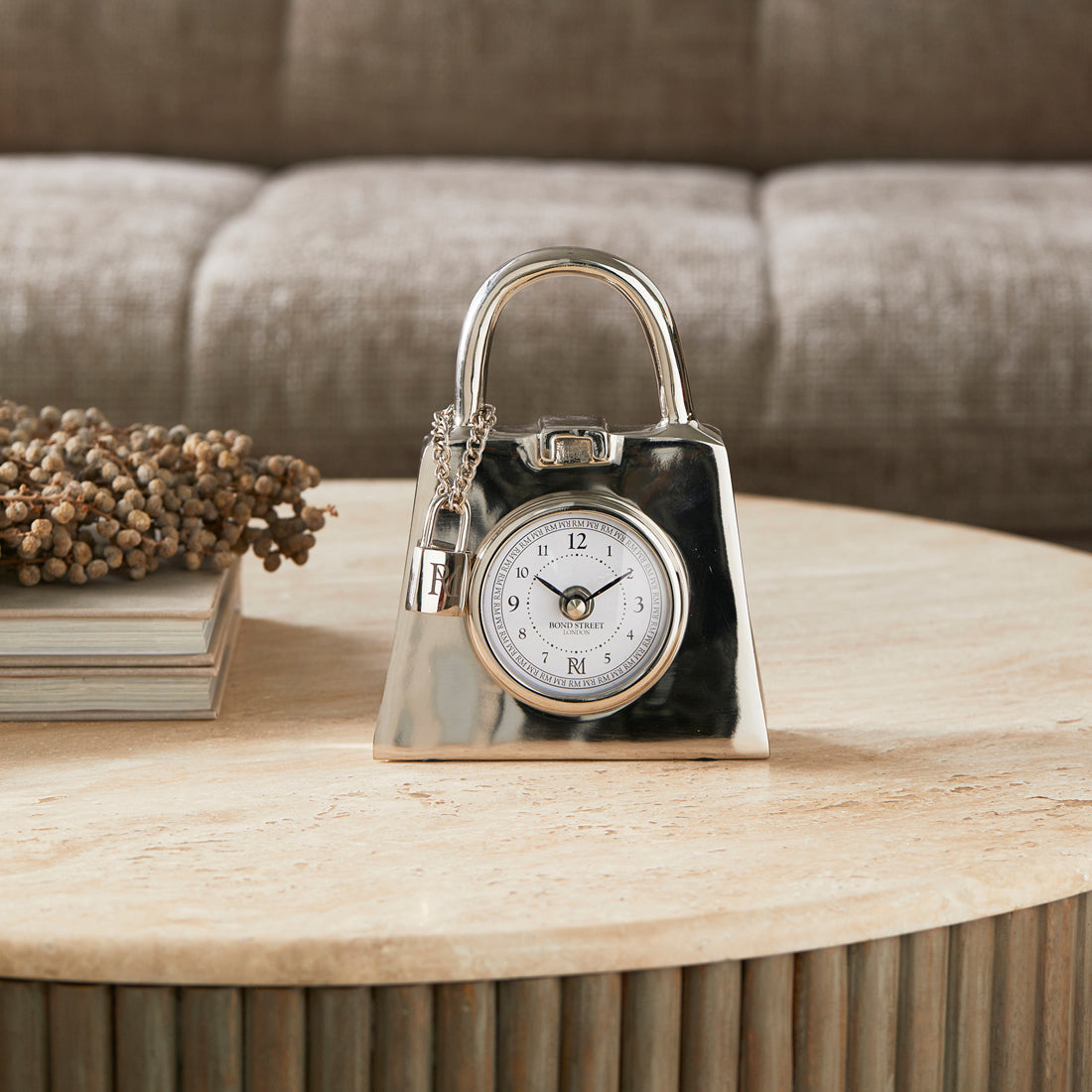 - Voor alle tassenliefhebbers: ontdek deze unieke klok, ontworpen met een klok in de vorm van een stijlvolle tas. Compleet met een charmant kettinkje en een delicate bedel, voegt deze klok een speelse en verfijnde flair toe aan je interieur. Perfect voor het combineren van je passie voor mode met functionele decoratie.