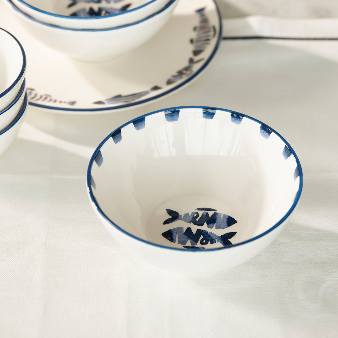 Riviera Maison Kom rond Blauw, Wit - Como Catch Schaaltje - Aardewerk