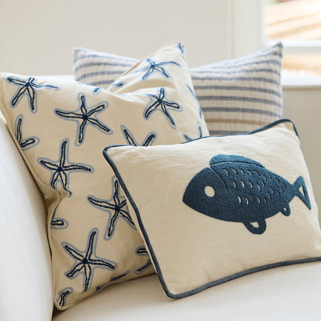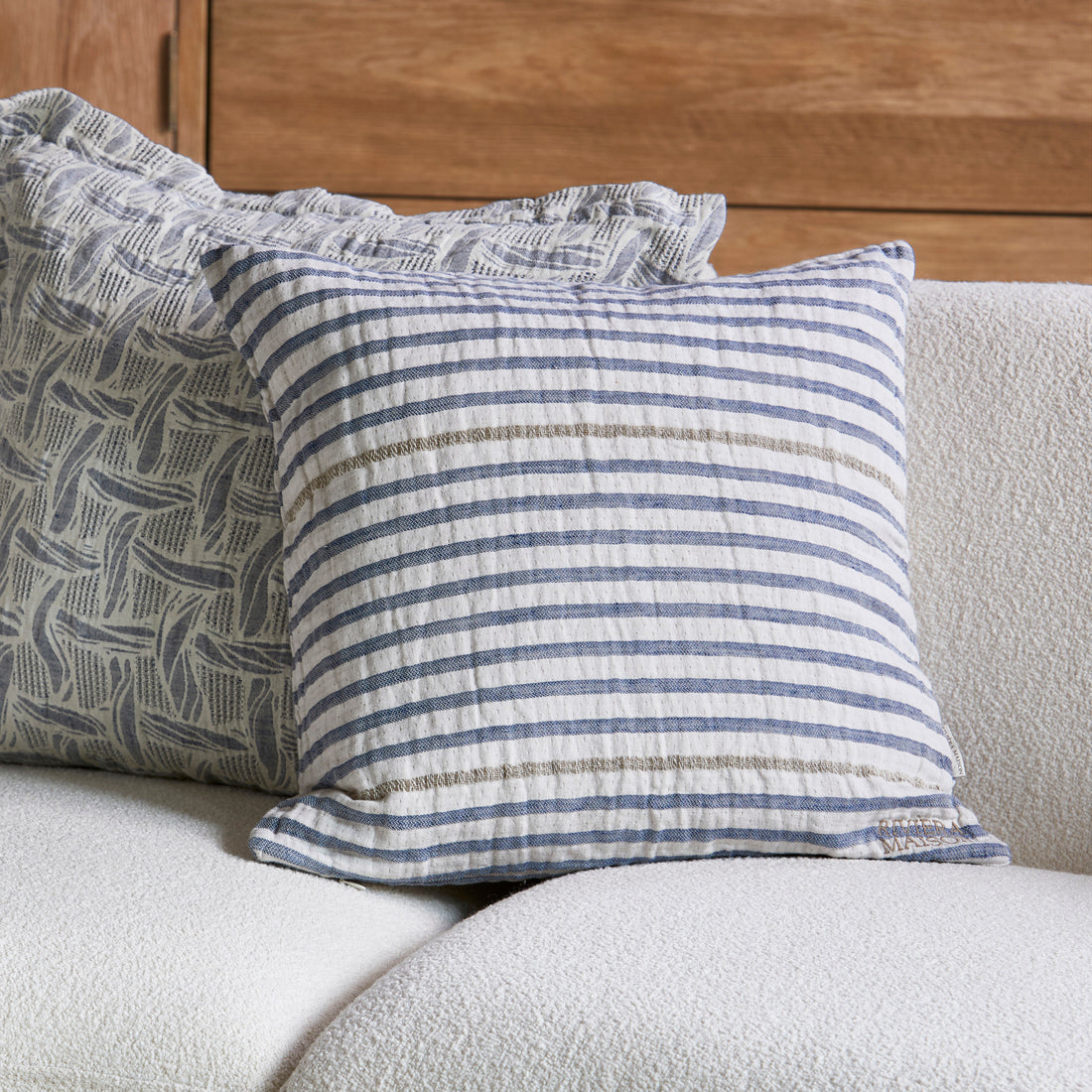 Riviera Maison Kussenhoes blauw met wit strepen 50x50 - Kempsey