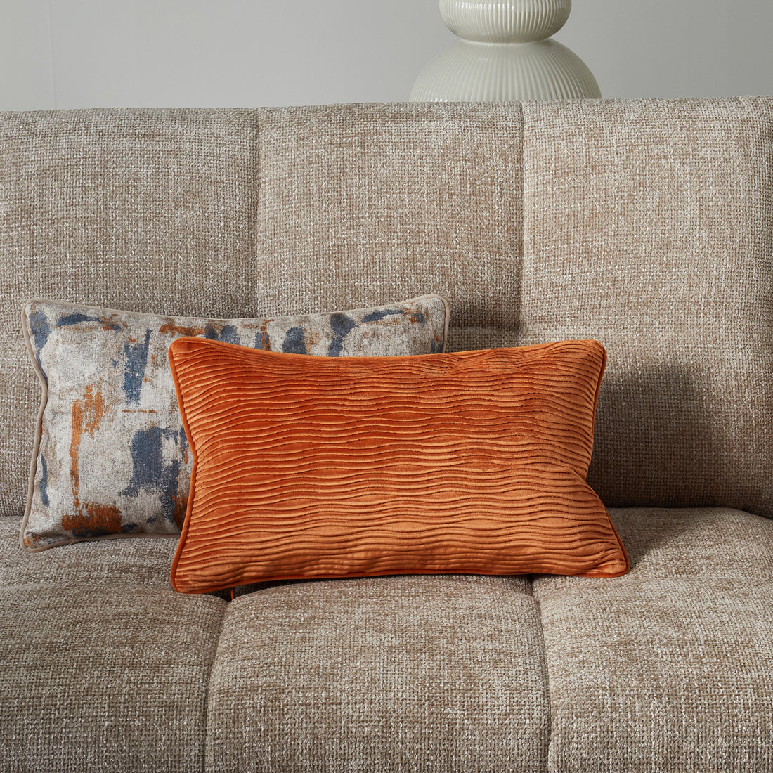 - Deze kussenhoes, uitgevoerd in een warme oranje tint, brengt de gezellige sfeer van de herfst in je interieur. De rijke textuur aan de voorkant voegt diepte en warmte toe, terwijl de gladde achterkant zorgt voor een verfijnde afwerking. Ideaal voor het creëren van een uitnodigende en herfstige sfeer, biedt deze kussenhoes zowel stijl als comfort en maakt je ruimte extra knus tijdens de herfstmaanden.