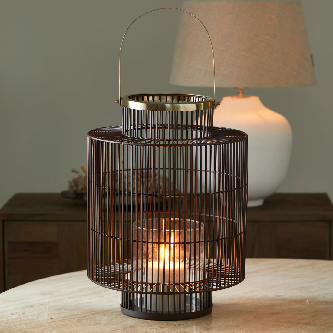 Riviera Maison Lantaarn Windlicht Bruin - Yuni - IJzer (ØxH) 39x48.5