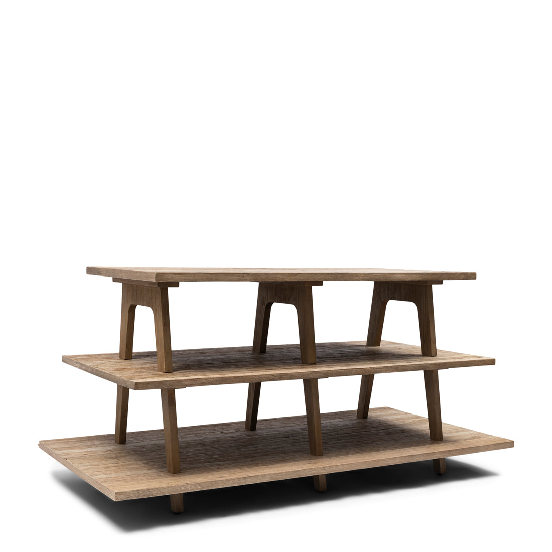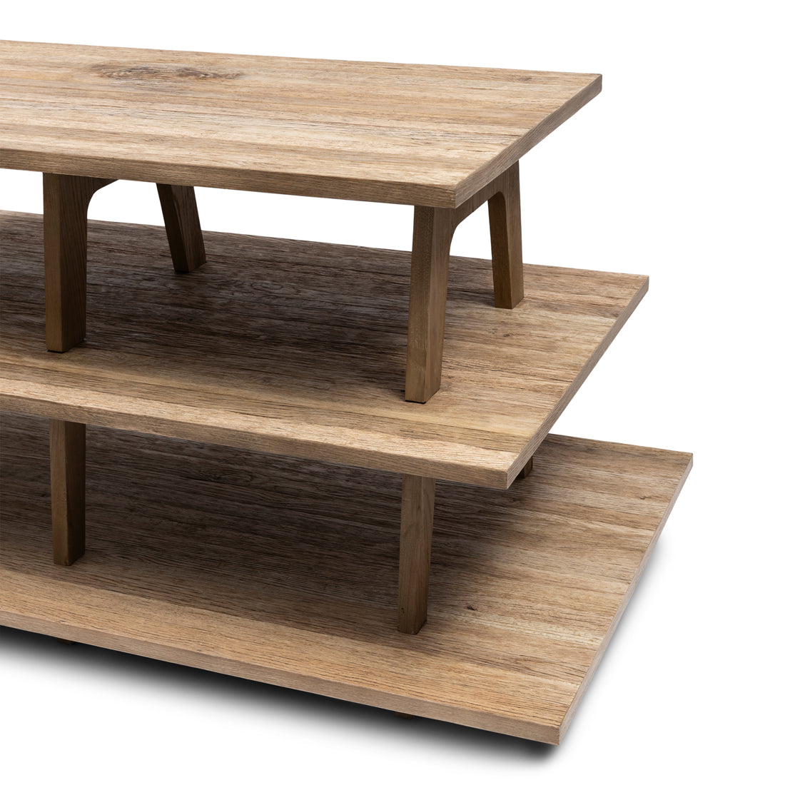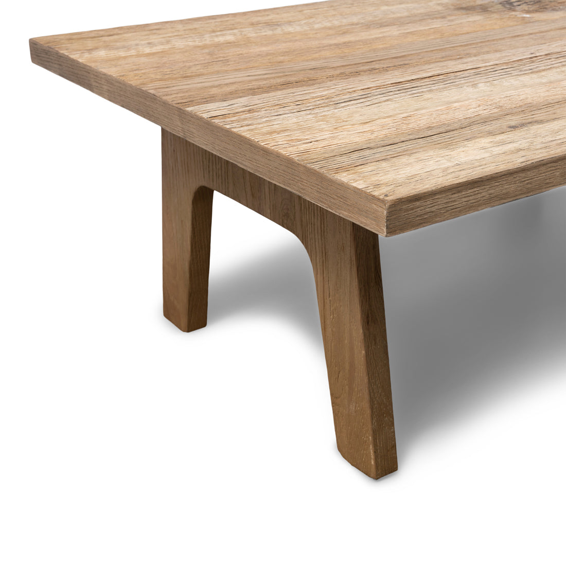 - Het gerecycled eikenhout geeft de tafel een unieke uitstraling die prachtig aansluit bij zowel moderne als klassieke interieurs – een toevoeging die de sfeer in jouw woonruimte verbeterd.