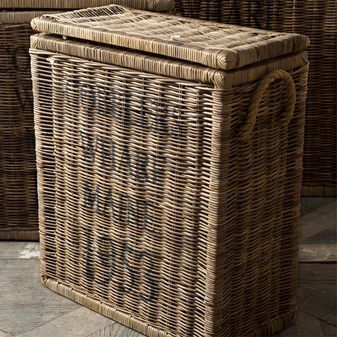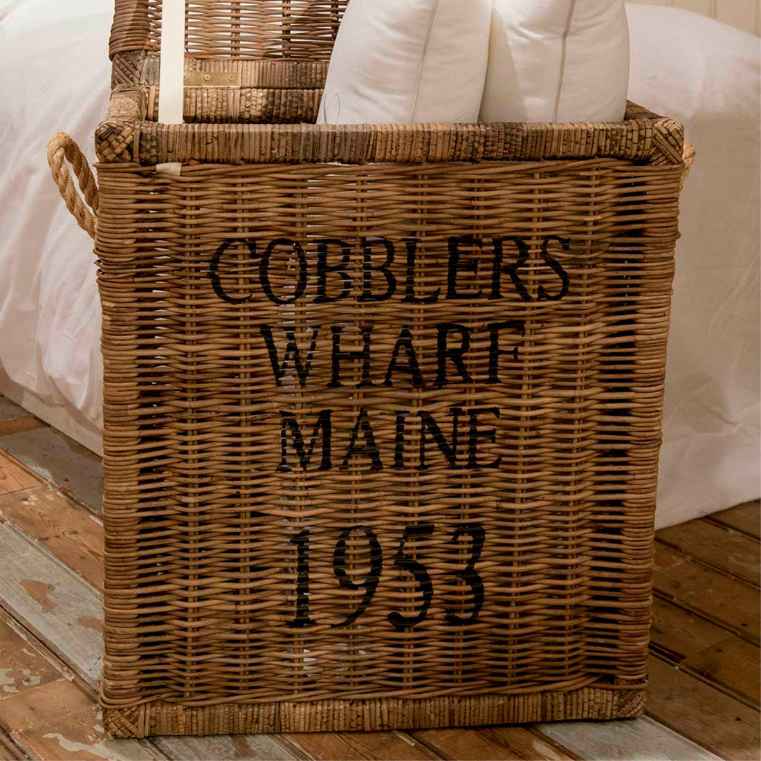 Rivièra Maison - Opbergmand Cobblers Wharf in natuurlijk riet en mahoniehout, met een formaat van 60x30x70 cm