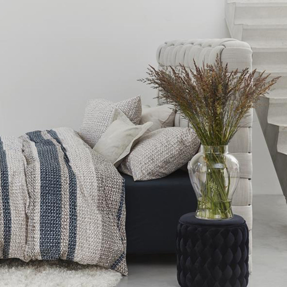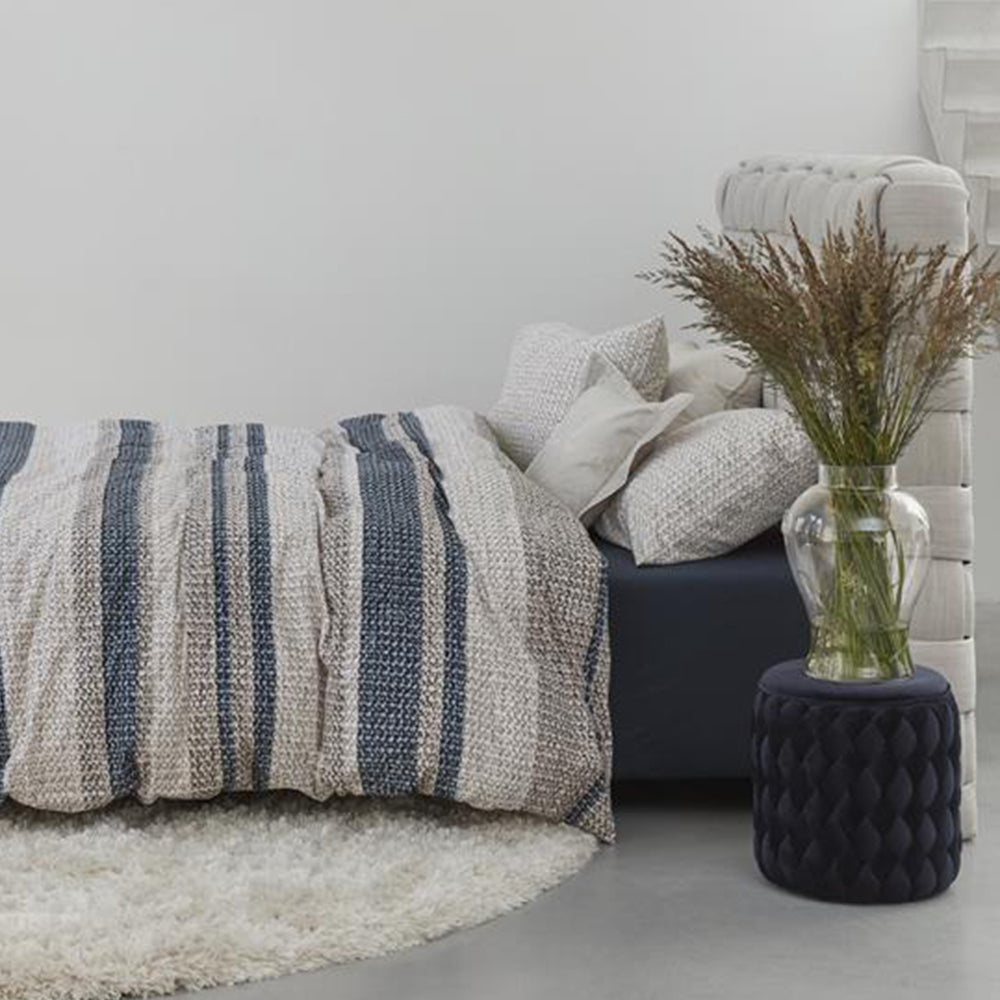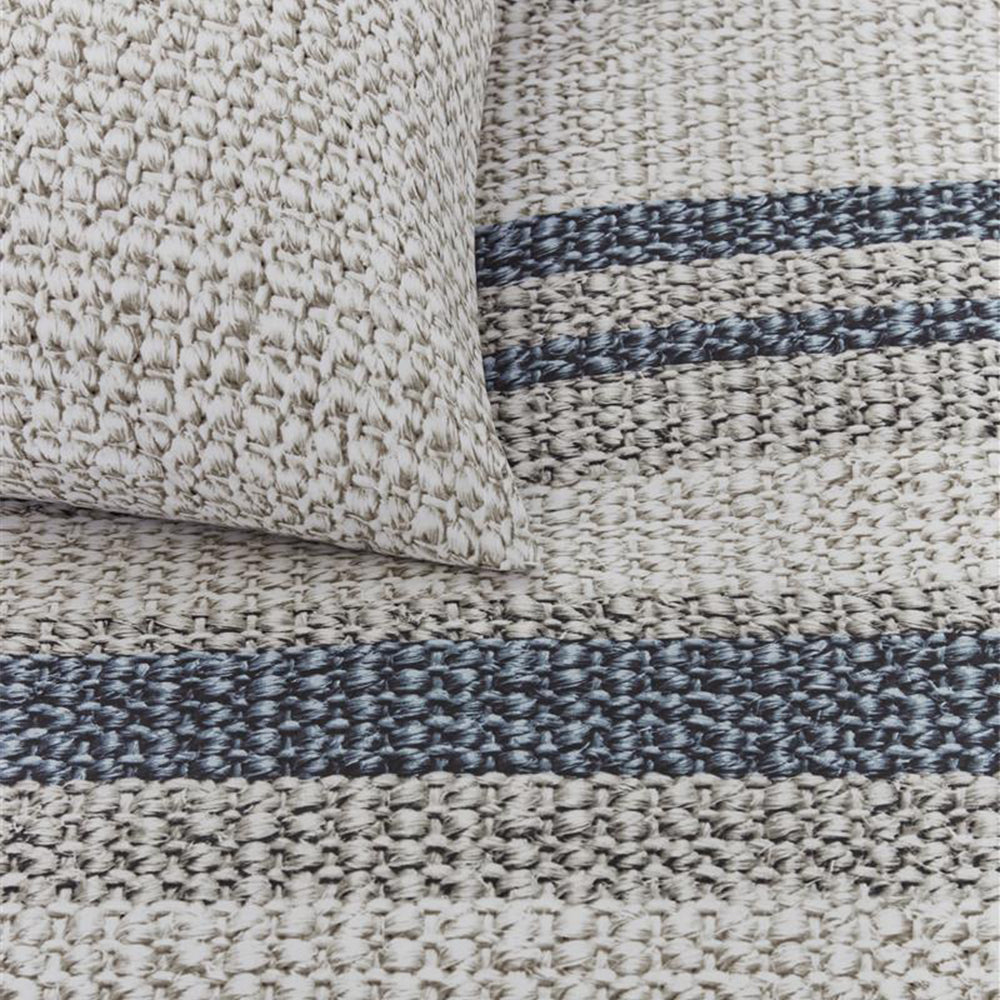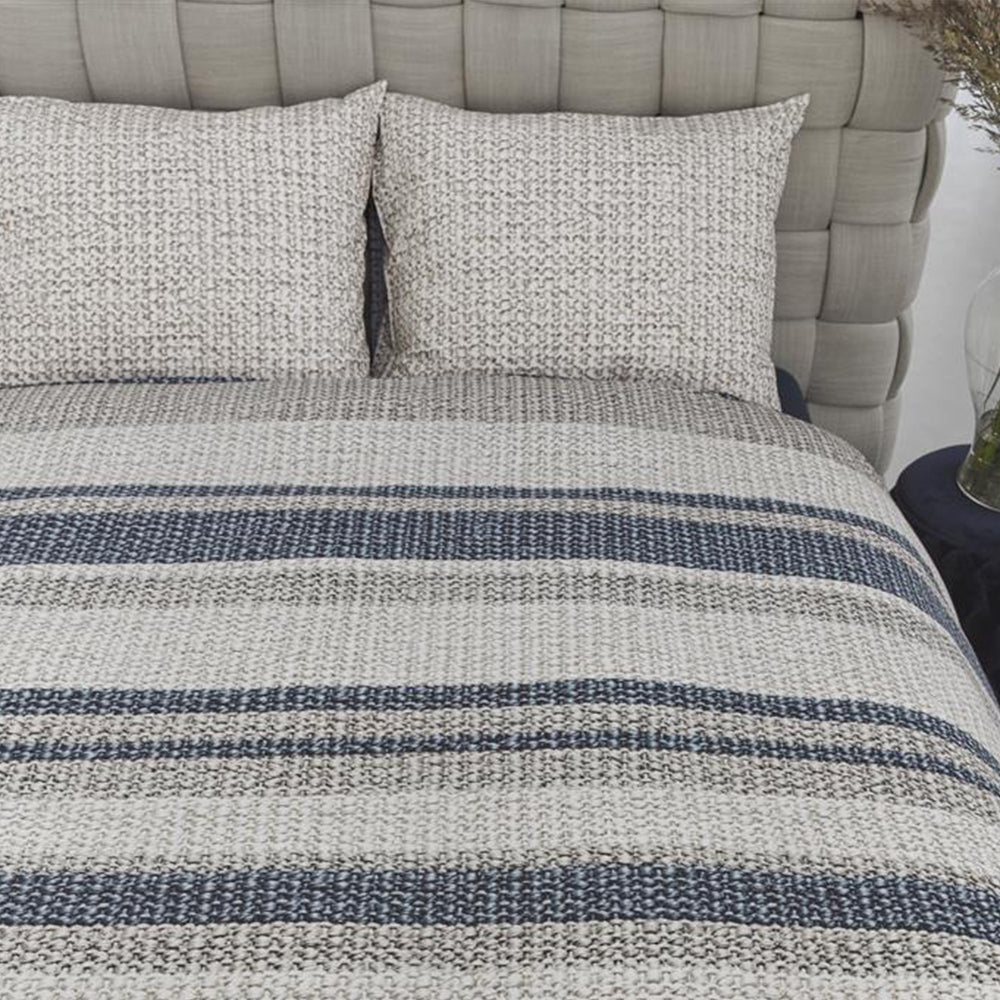 Waarom dekbedovertrek Rattan Stripes? Dekbedovertrek Rattan Stripes wordt gekenmerkt door de horizontale in verschillende diktes. De banen hebbben verschillende kleure; blauwgrijs gecombineerd met taupe en beige. Het overtrek krijgt een warme uitstraling door de print van gevlochten rattan op de ondergrond. De voor- en achterzijde van het overtrek zijn hetzelfde. De kussenslopen hebben een effen kleur met de gevlochten rattanprint. Combineer dit overtrek met het sierkussen Flaxy uit de bedtextielcollectie van Rivièra Maison.