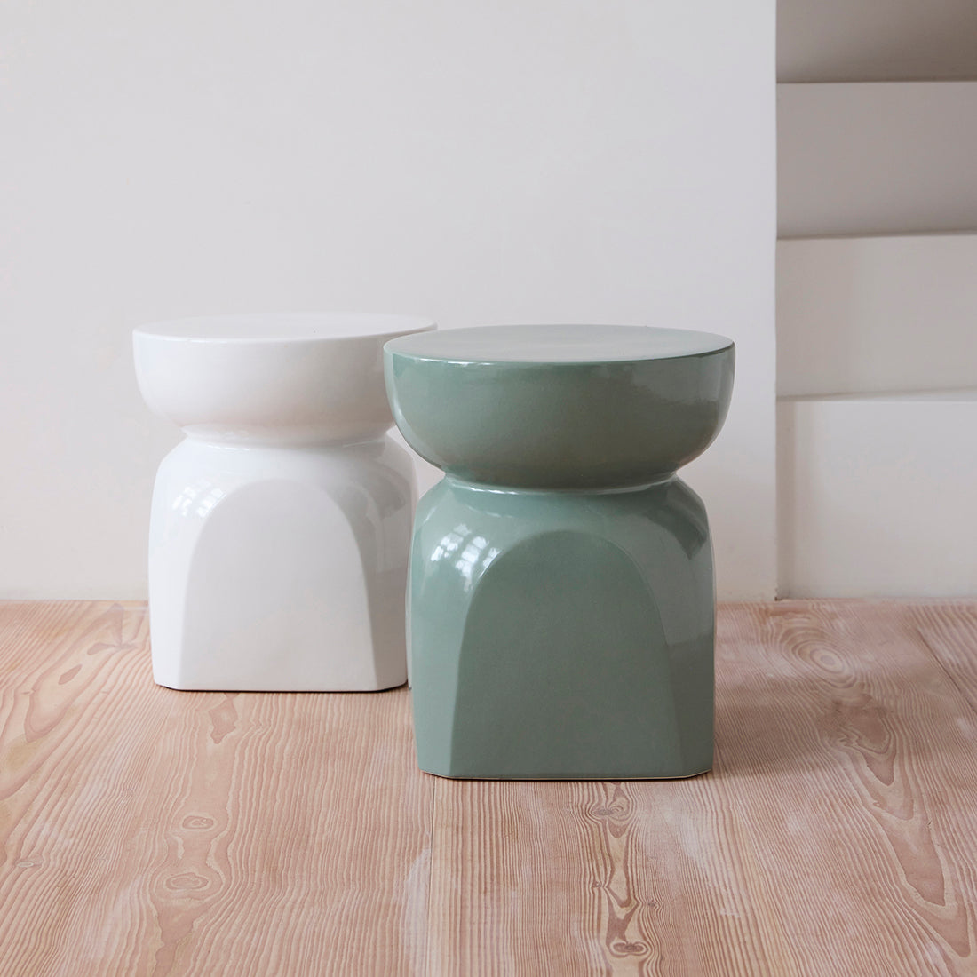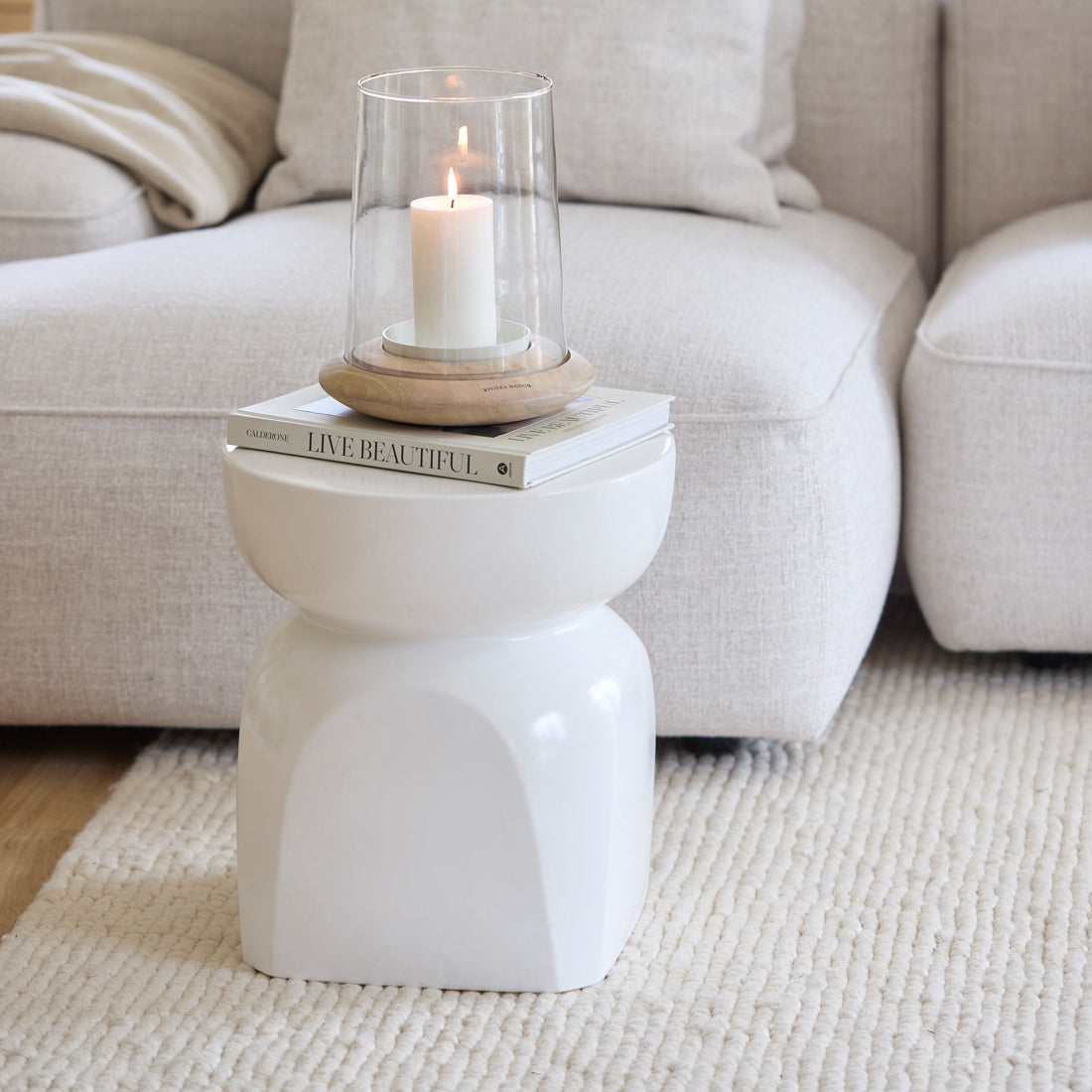 Rivièra Maison - Ronde Porto Einde Tafel in Wit K34 Keramiek met een hoogte van 42,5 cm