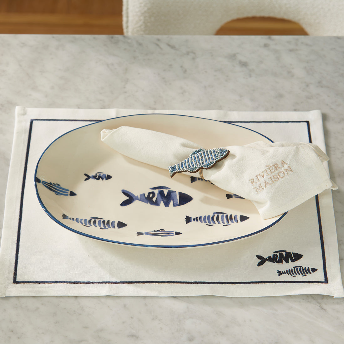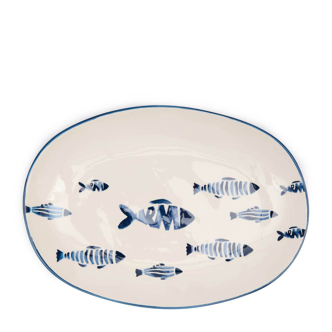 Riviera Maison Serveerbord Blauw, Wit - Como Catch Ovaal bord