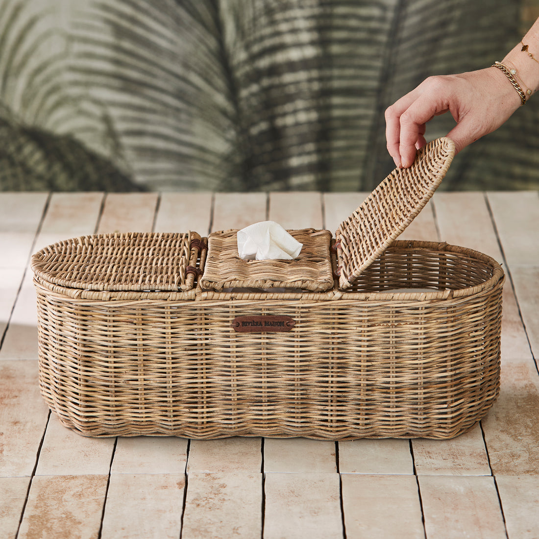 Riviera Maison Toiletrolhouder met tissuebox Ovaal - Rattan
