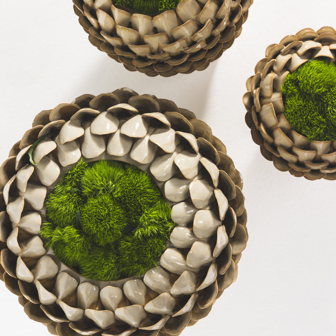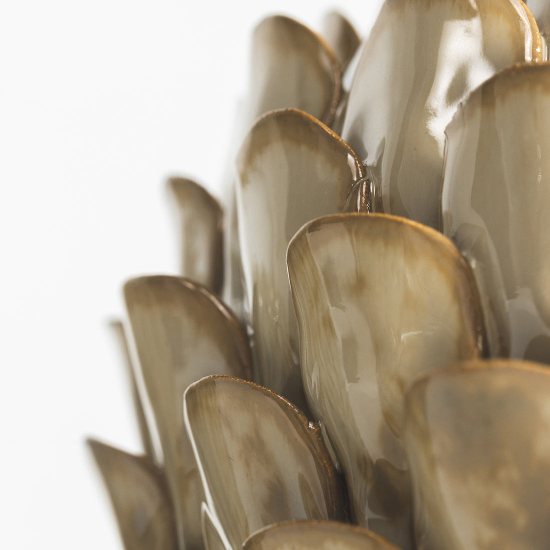 - Deze opvallende vaas, geïnspireerd door de vorm van een artisjok, is volledig met de hand vervaardigd uit keramiek. De zachte groene kleur en het gedetailleerde ontwerp maken dit stuk een charmante toevoeging aan elk interieur, dat zeker de aandacht trekt. Gemaakt door vakmensen met meer dan 30 jaar ervaring, wordt elk stuk met de hand gegoten op de draaischijf en afgewerkt met glazuur. Het draaien op de draaischijf vormt de basis, waarna de gedetailleerde bladeren met de hand worden gesculpteerd. Het creëren van zulke gedetailleerde elementen duurt 5-10 minuten per bloem, en het boetseren van een volledige vaas neemt 1 tot 2 uur in beslag. Een artisanale werker kan dagelijks 5-6 vazen vervaardigen. Na het sculpturen ondergaat de vaas een zorgvuldig droog- en glazuurproces in de oven, wat bijdraagt aan de unieke schoonheid en luxe uitstraling van dit handgemaakte kunstwerk.