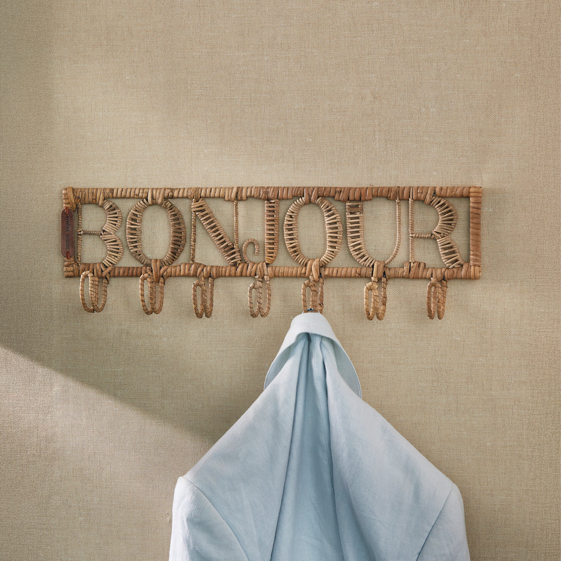 Riviera Maison Wandkapstok met tekst Bruin - Bonjour Kapstok - Rattan