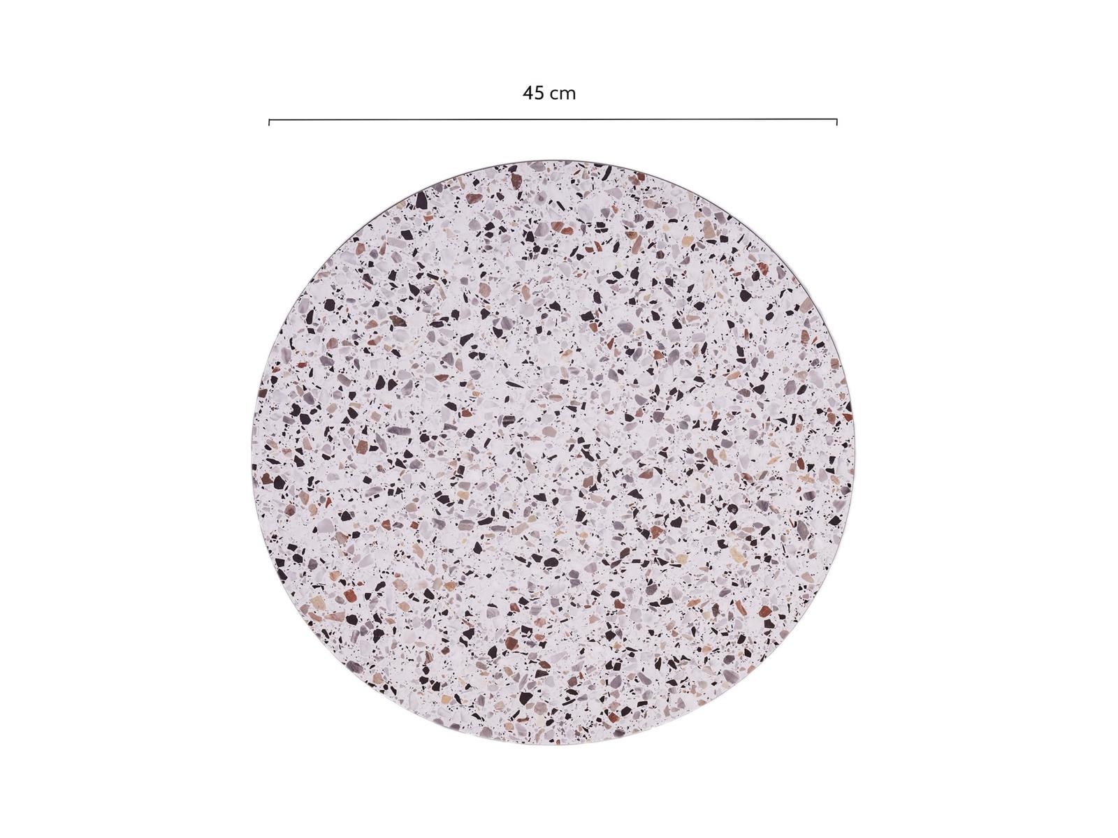 Dit prachtige ronde tafelblad Lucca 45sdfcm is gemaakt uit het onderhoudsarme materiaal HPL. Ditsdfronde bladsdfis voorzien van een trendy terrazzosdfprint dat nauwelijkssdfvan echt terrazzosdfis te onderscheiden. Je hebt zo wel de trendy look van echt terrazzosdfmaar niet de nadelen. Echt terrazzosdfis loodzwaar, breekbaar en lastig te reinigen. Ontstane vlekken gaan nooit meer uit echt terrazzo. Hier heb je bij HPL geen last van.sdf