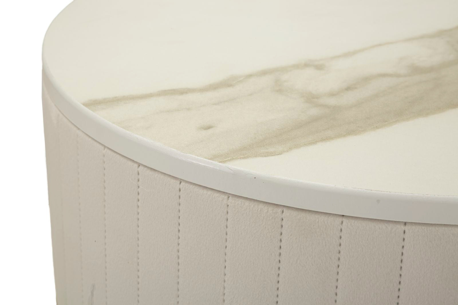 Ronde hoge tafels set van 2 in crèmekleurig fluweel cm ø 50x90-40x70