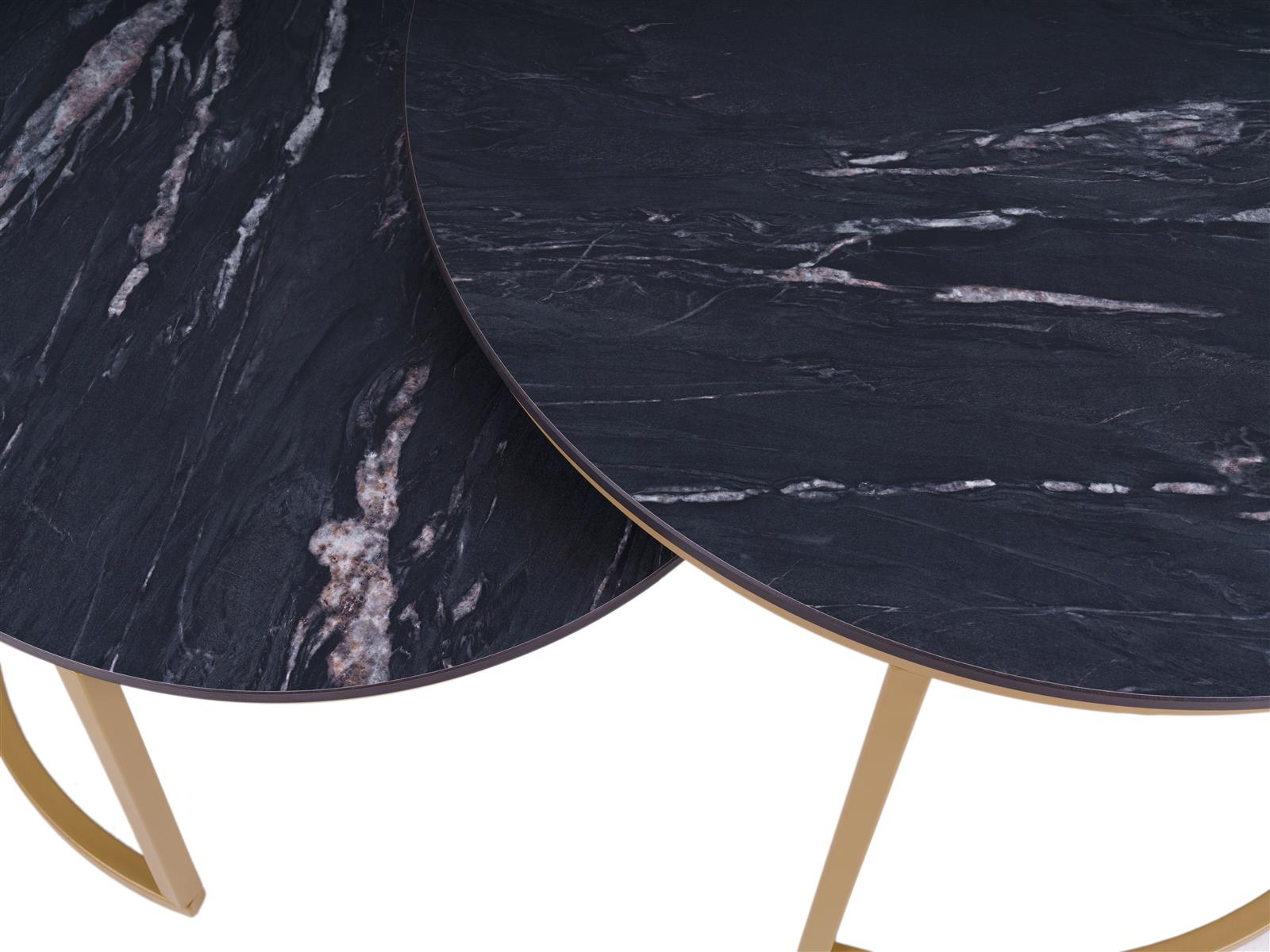 Deze prachtige ronde set salontafels Firenze van 58 cm en 75 cm is gemaakt uit het onderhoudsarme materiaal HPL. Deze set ronde tafeltjes zijn voorzien van een trendy zwart marmer print die nauwelijks van echt marmer is te onderscheiden. Je hebt zo wel de trendy look van echt marmer maar niet de nadelen. Echt marmer is loodzwaar, breekbaar en lastig te reinigen. Ontstane vlekken gaan nooit meer uit echt marmer. Hier heb je bij HPL geen last van.