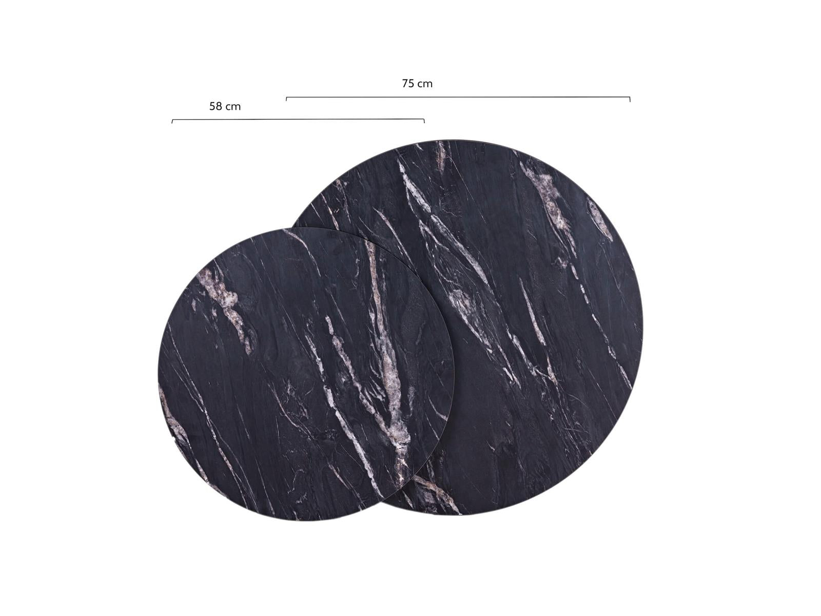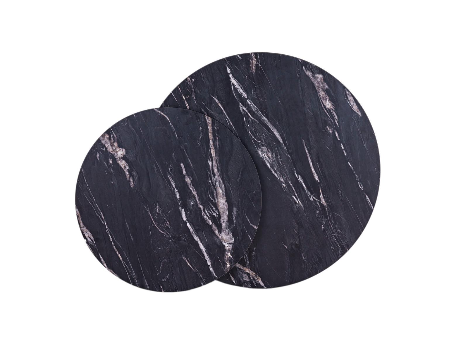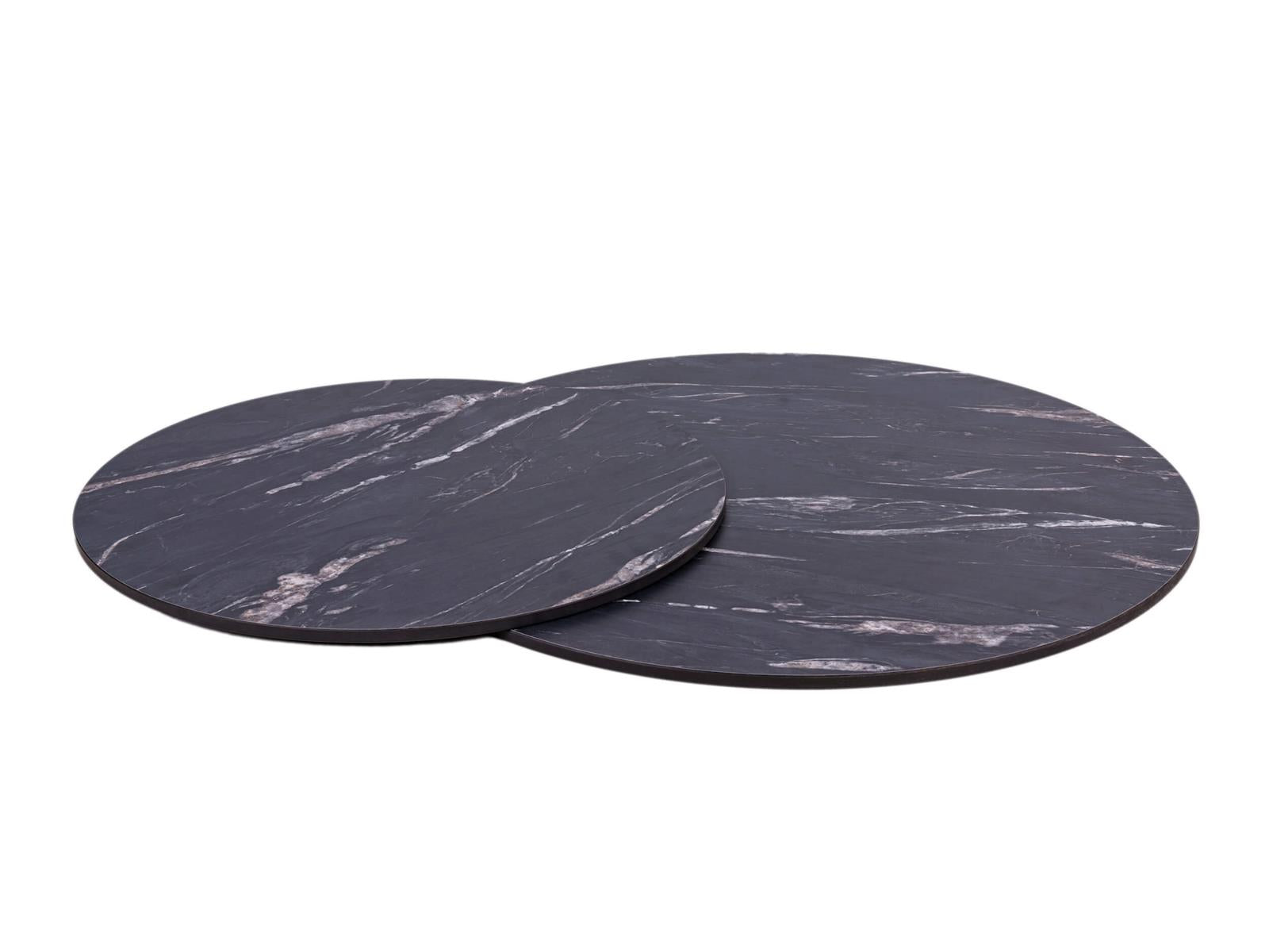 Deze prachtige set ronde tafelbladen Firenze van 58 cm en 45sdfcm issdfgemaakt uit het onderhoudsarme materiaal HPL. Deze set ronde bladen is voorzien van een trendy zwart marmer print diesdfnauwelijkssdfvan echt marmer is te onderscheiden. Je hebt zo wel de trendy look van echt marmer maar niet de nadelen. Echt marmer is loodzwaar, breekbaar en lastig te reinigen. Ontstane vlekken gaan nooit meer uit echt marmer. Hier heb je bij HPL geen last van.sdf