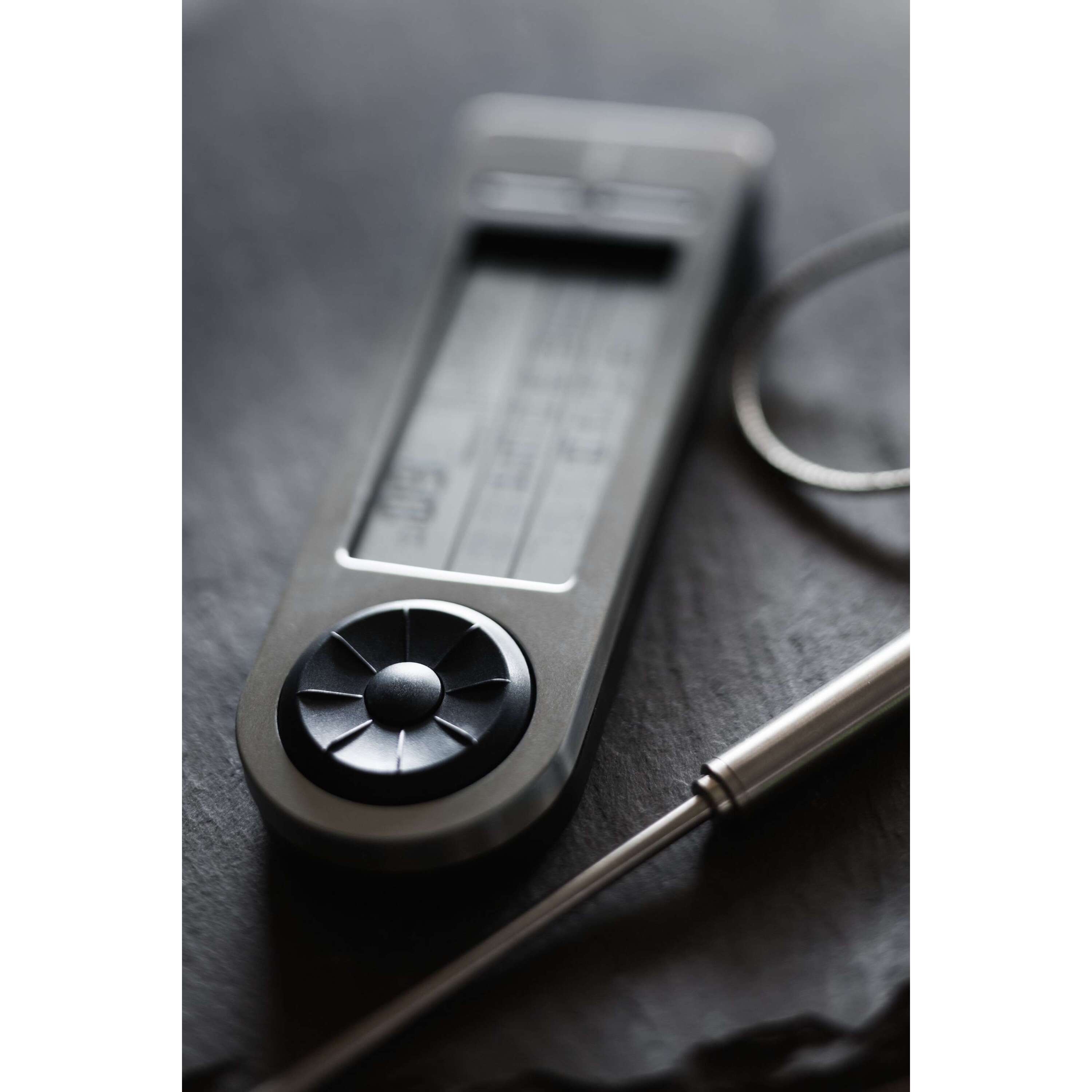 Barbecue Kernthermometer - Digitaal van het merk Rösle. Deze thermometer heeft een digitale display en een temperatuurberiek van -20 graden tot en met 250 graden. Deze thermometer is perfect om de ideale kerntemperatuur te bepalen en als geheugensteun zijn de temperatuurwaarden voor rundvlees, varkensvlees, kalfsvlees, gevogelte en lam al ingesteld. De thermometer heeft twee sondes waardoor de temperatuur van de vleeskern en de grilltermperatuur tegelijk bijgehouden kunnen worden.