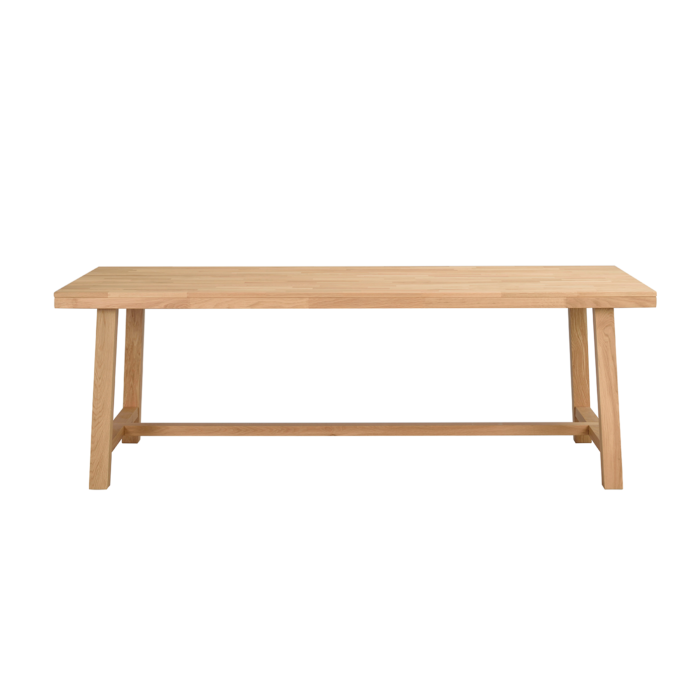 De Brooklyn eettafel is een echte ‘leeftafel’. Met zijn lengte van maar liefst 220 cm kan er met gemak tegelijkertijd aan gestudeerd, gewerkt en gegeten worden. Bovendien is de tafel nog verder uit te breiden met het speciale Brooklyn verlengstuk. Hierdoor biedt de tafel plaats aan wel tien personen! De tafel is gemaakt van massief eikenhout met het FSC-keurmerk. De balk tussen de twee onderstellen is niet alleen een leuk detail, maar dient tevens als handige voetensteun.