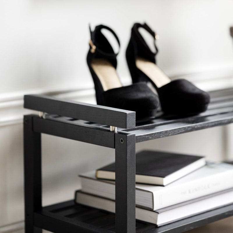 Slingeren bij jou ook altijd schoenen door het hele huis? Berg ze netjes naast elkaar op in het eikenhouten Confetti schoenenrek van Rowico Home.