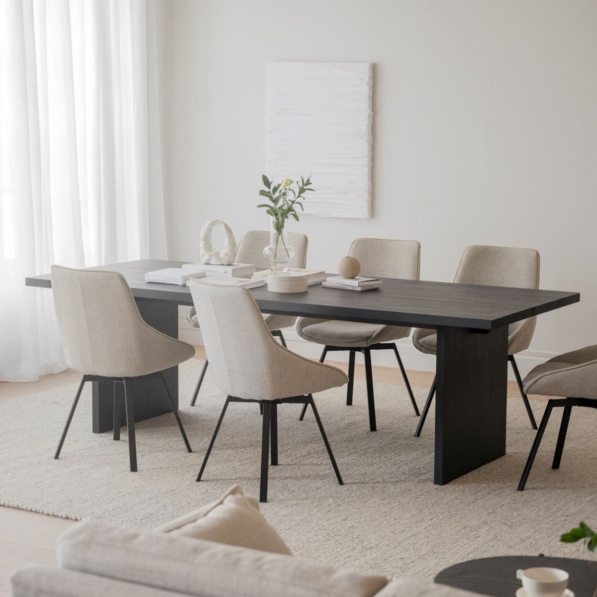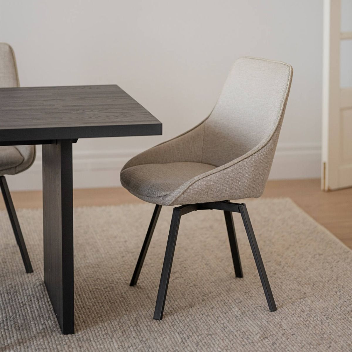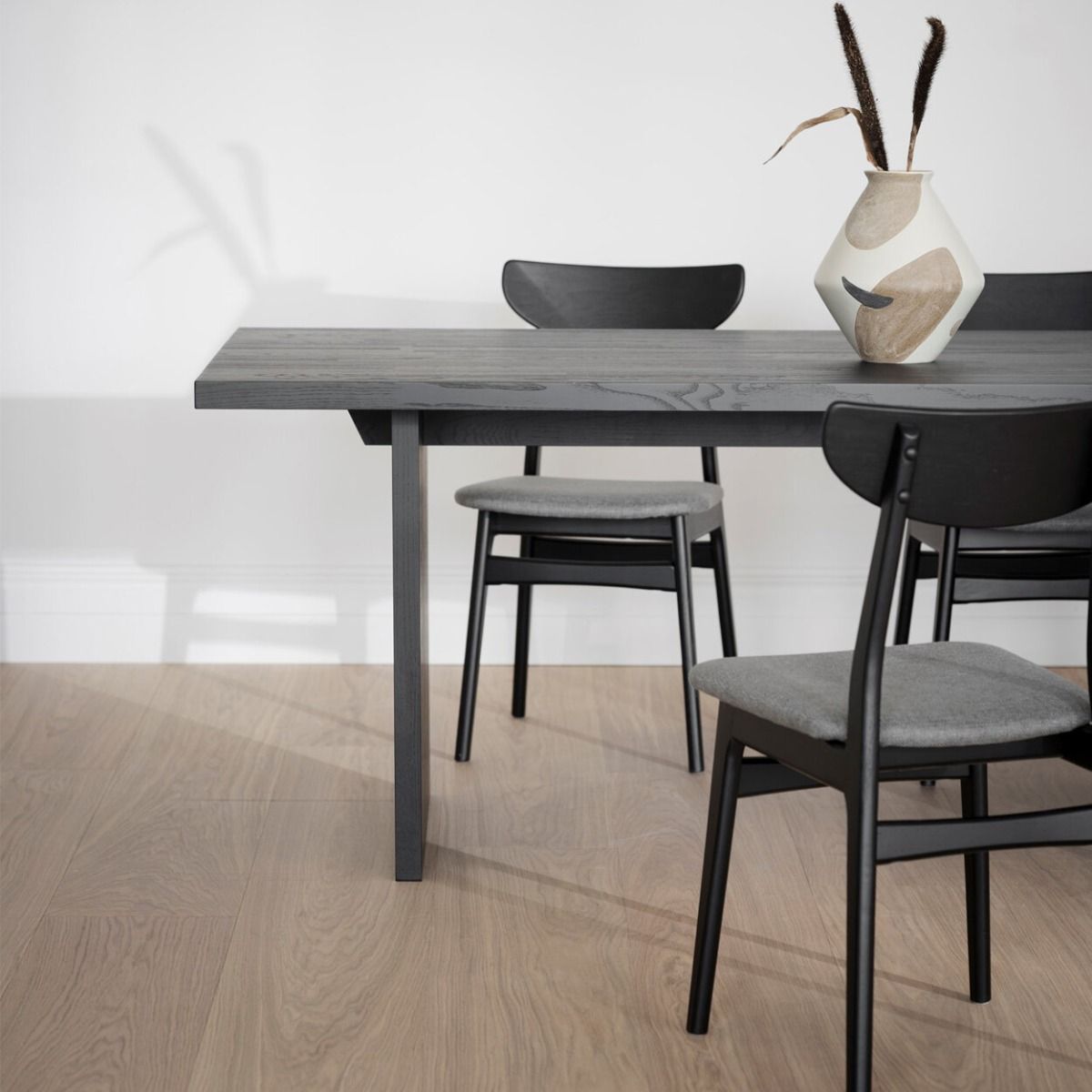 De Rowico Emmett eettafel is gemaakt uit zwart gelakt, 100% FSC-gecertificeerd Europees essenhout Dat betekent dat je met deze eettafel in huis gegarandeerd bijdraagt aan mens en milieu Uiteraard mag ook het unieke design niet vergeten worden De poten zijn niet aan het uiteinden van de tafel geplaatst, maar iets daarvan af, waardoor de tafel een speelse uitstraling heeft Tevens zorgt het er ook voor dat je voldoende plek hebt voor 6 personen