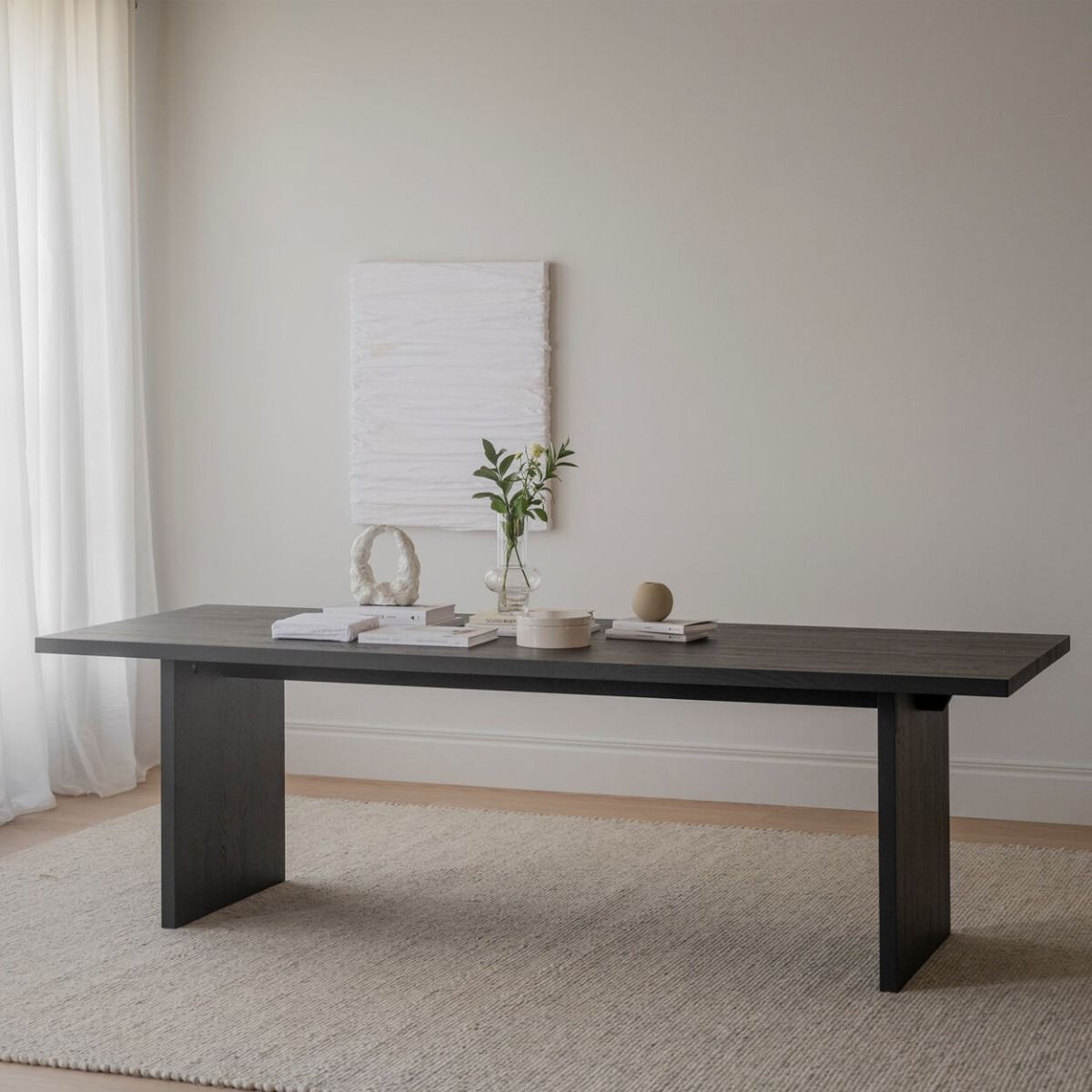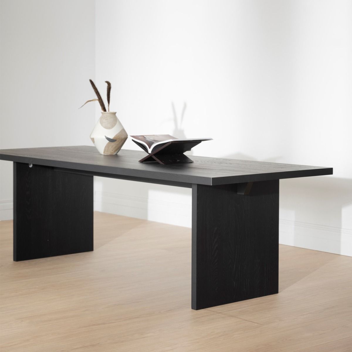 - Materiaal tafelblad en onderstel/poten: zwart gelakt essenhout (FSC-gecertificeerd)
