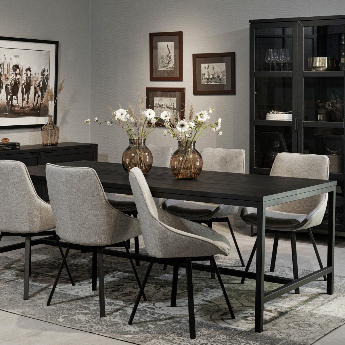 De Everett eetkamertafel heeft een metalen onderstel met een massief eikenhouten tafelblad. Het strakke tafelblad en de robuuste poten zorgen samen voor de prachtige balans in het design van deze Scandinavische tafel.