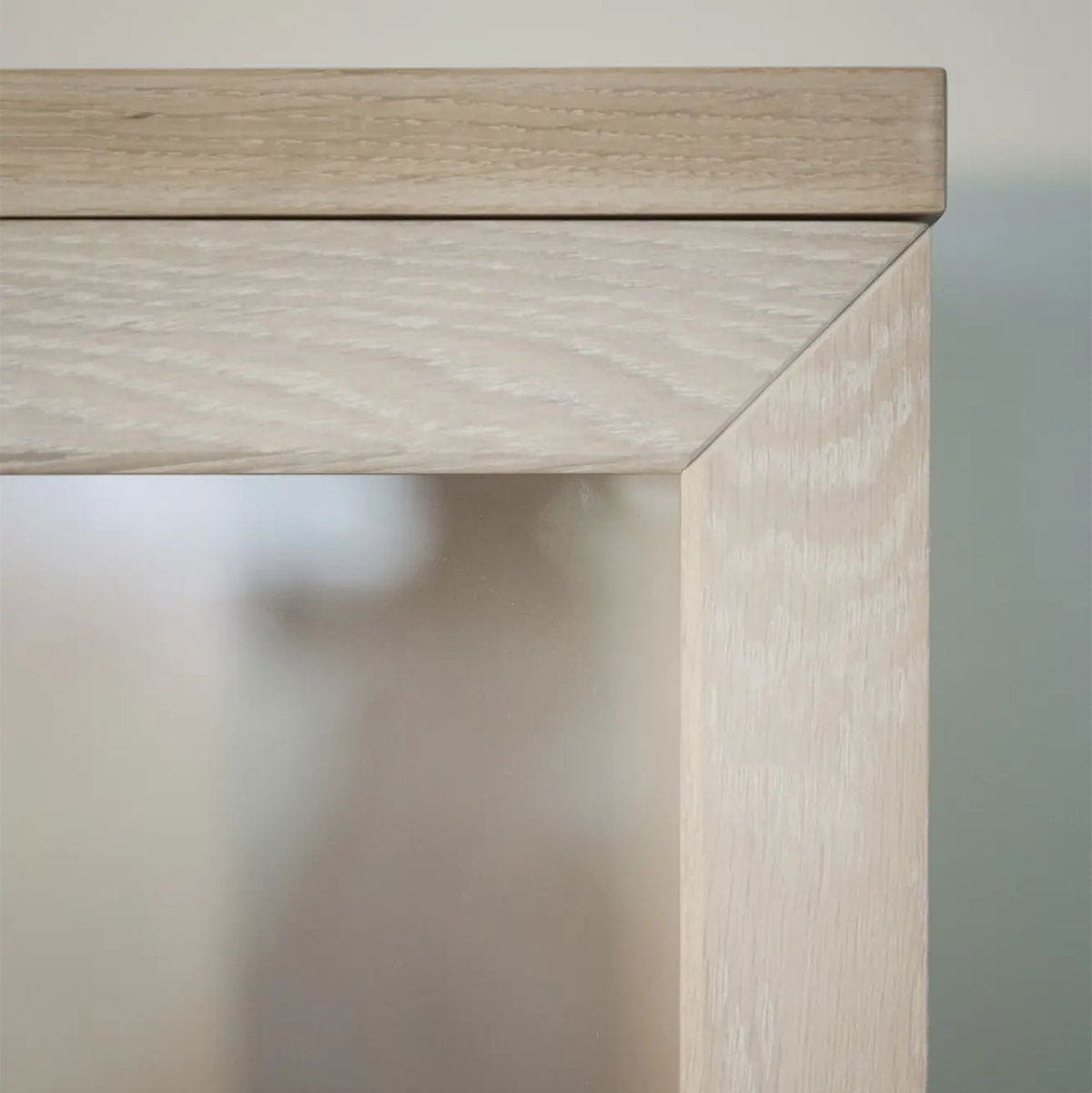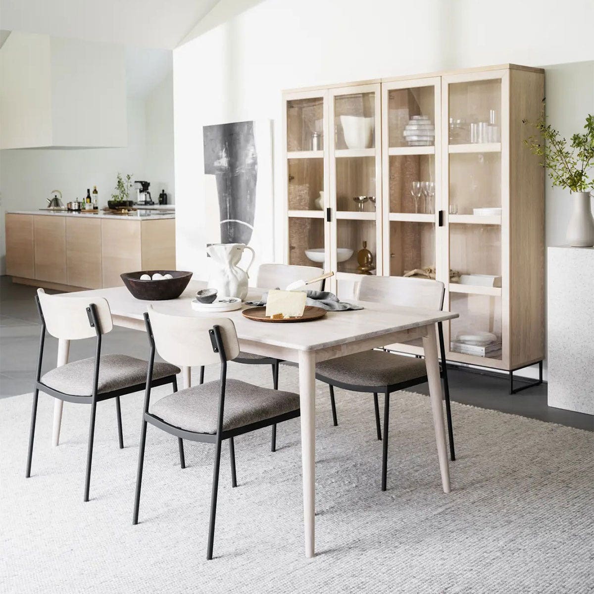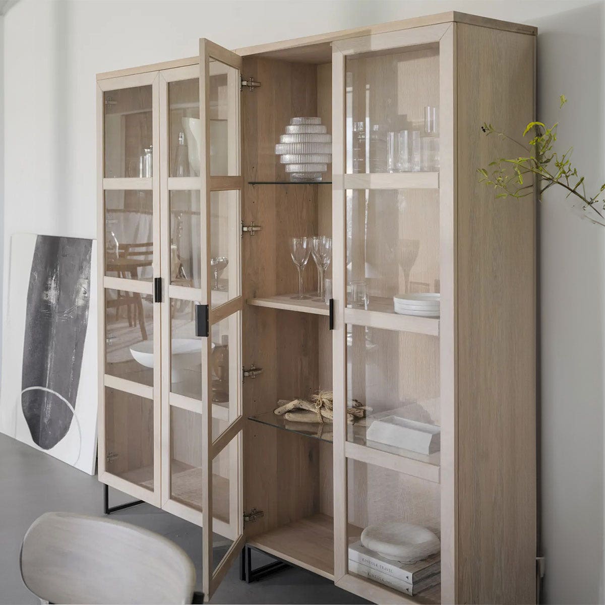 Door de verschillende planken - van glas en hout - creëer je een speels effect in de kast. Combineer je mooiste servies, met souvenirs van vakantie, tekeningen van de kinderen en kleine plantjes om de kast echt eigen te maken. Door de glazen deuren zijn je spullen goed te bewonderen.