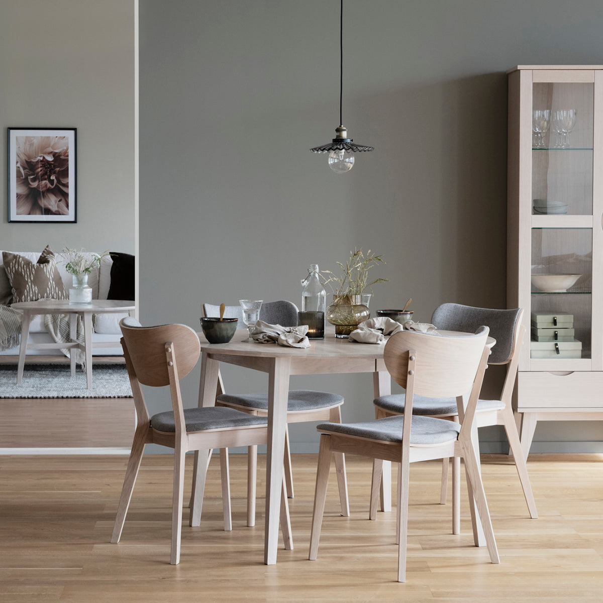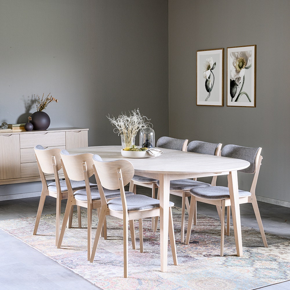 Rowico Home Kato Houten Eetkamerstoel Whitewash - Lichtgrijze Zitting