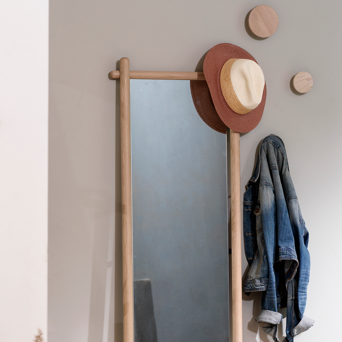 Dankzij de ronde vormen en het gebruik van massief eikenhout heeft de kapstok een moderne maar toch natuurlijke uitstraling. Deze wandknoppen zijn beschikbaar in Ø8 of Ø12 cm. Combineer beide formaten om een speels effect aan je muur te creëren.