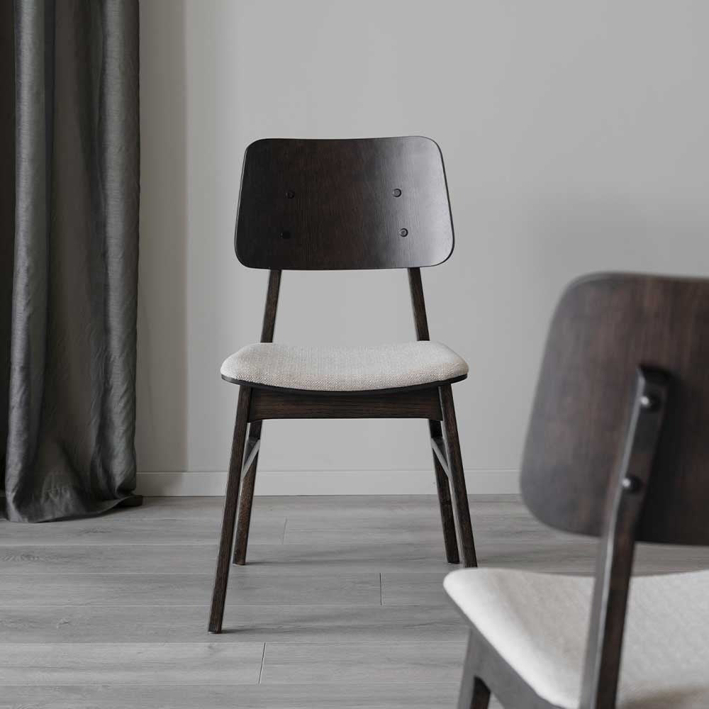 Rowico Home Nagano Houten Eetkamerstoel Bruin - Met Beige Zitkussen