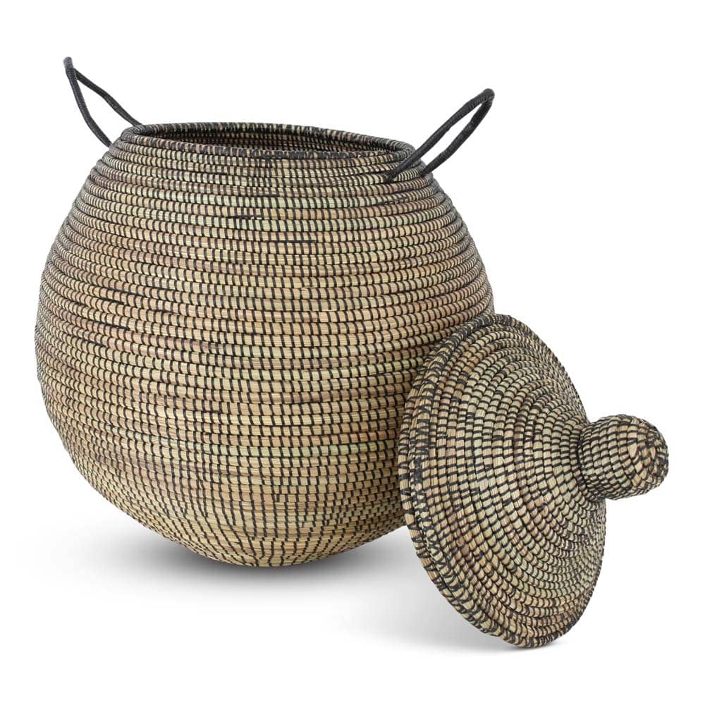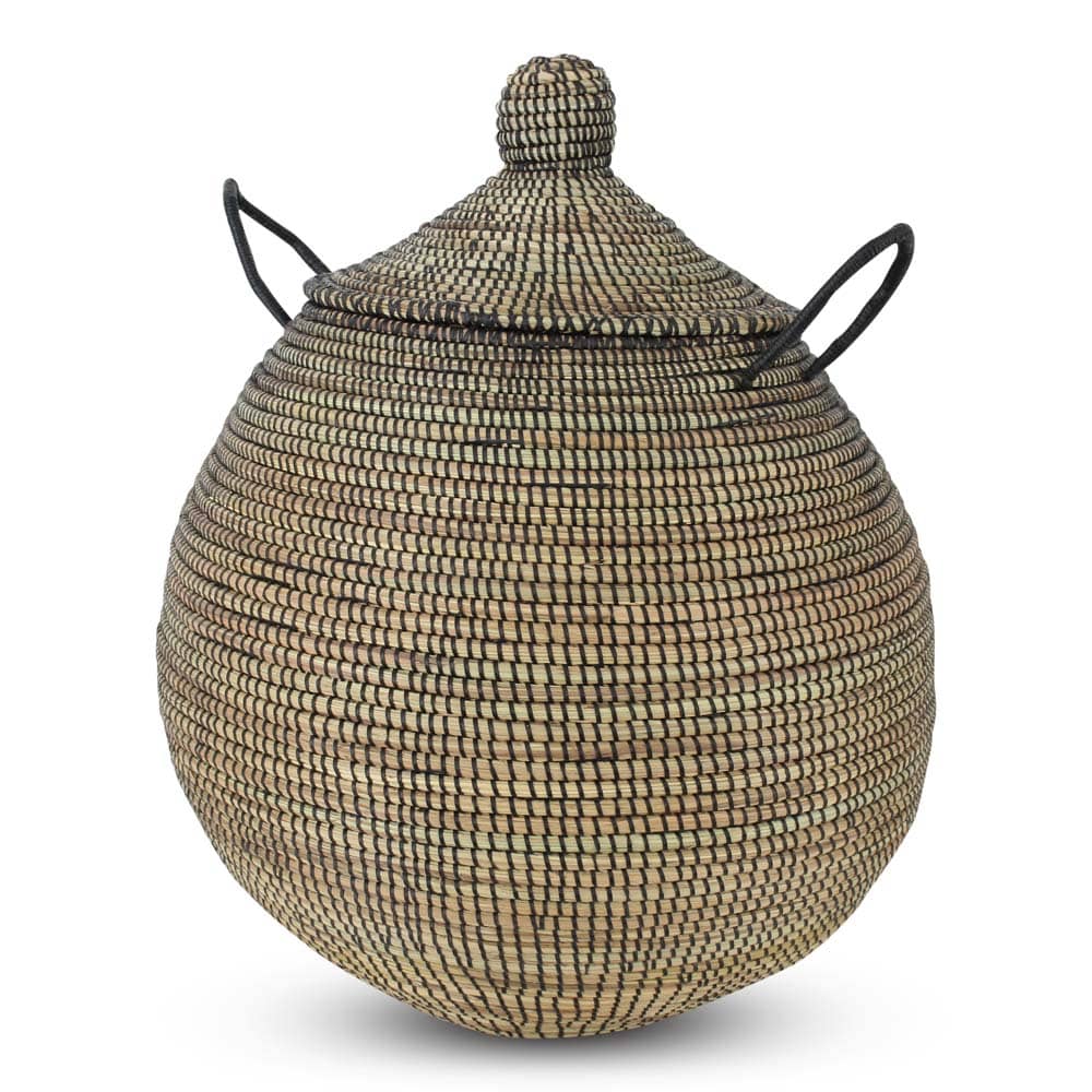Safaary - Rieten Mand met Deksel van Zeegras Zwart Tajine - 54x54 CM