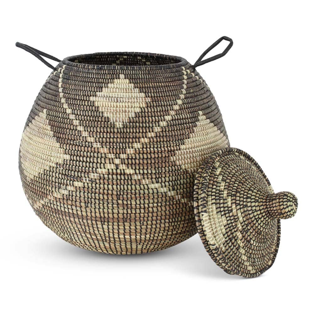 Fairtrade handgemaakte rieten manden met deksel van Zeegras