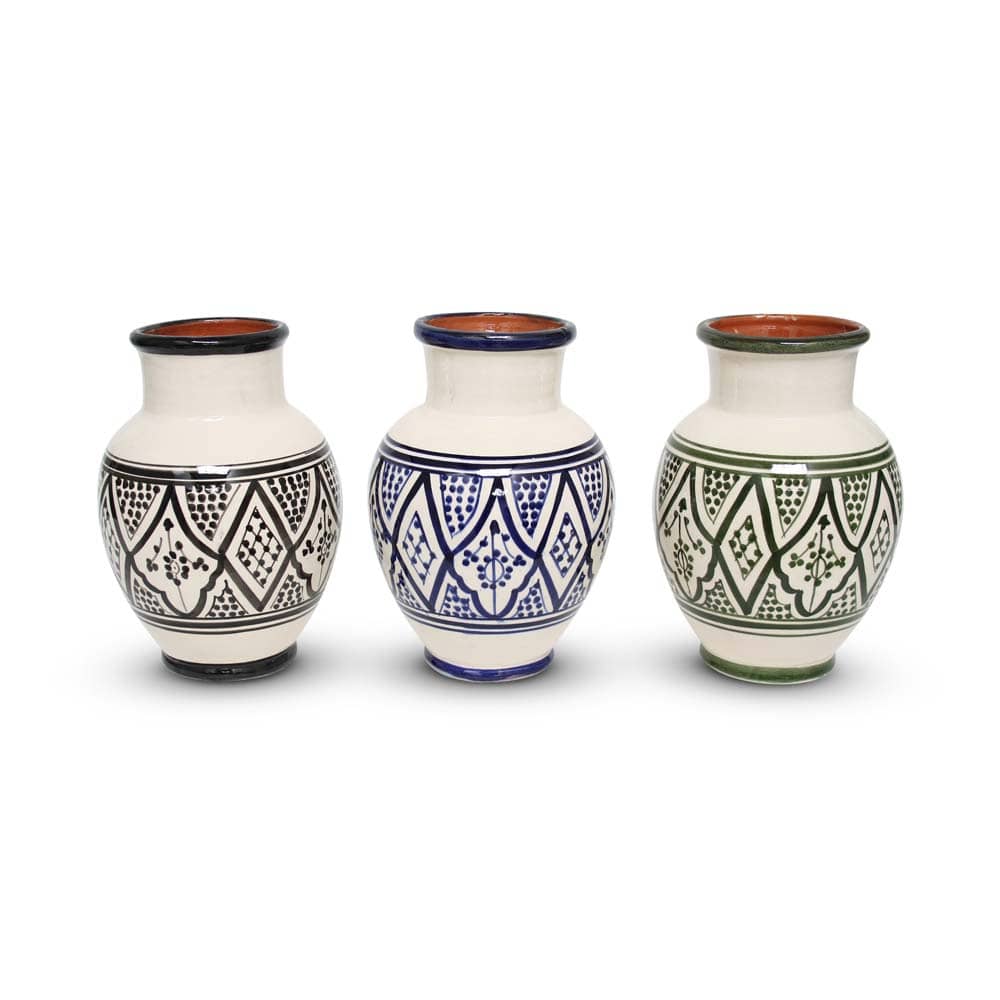 Marokkaanse vazen zijn geheel handgemaakt door ambachtslieden die hun vak goed verstaan. Deze Marokkaanse vaas is een uniek stuk exemplaar aardewerk. Handgemaakt van klei en met de hand geschilderd in een traditioneel patroon.