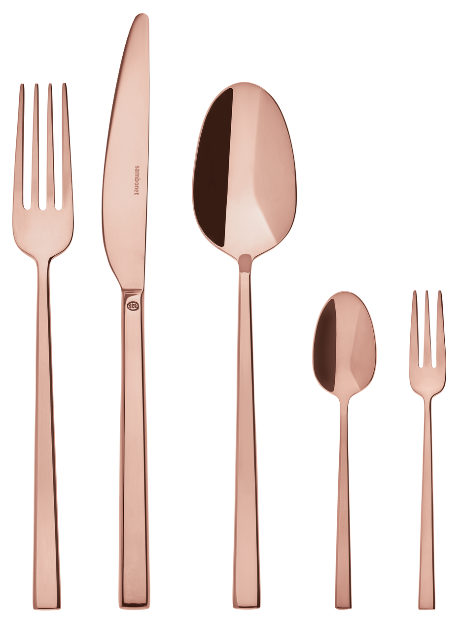 - 12 x Sambonet Tafelmes Rock Mirror PVD Copper