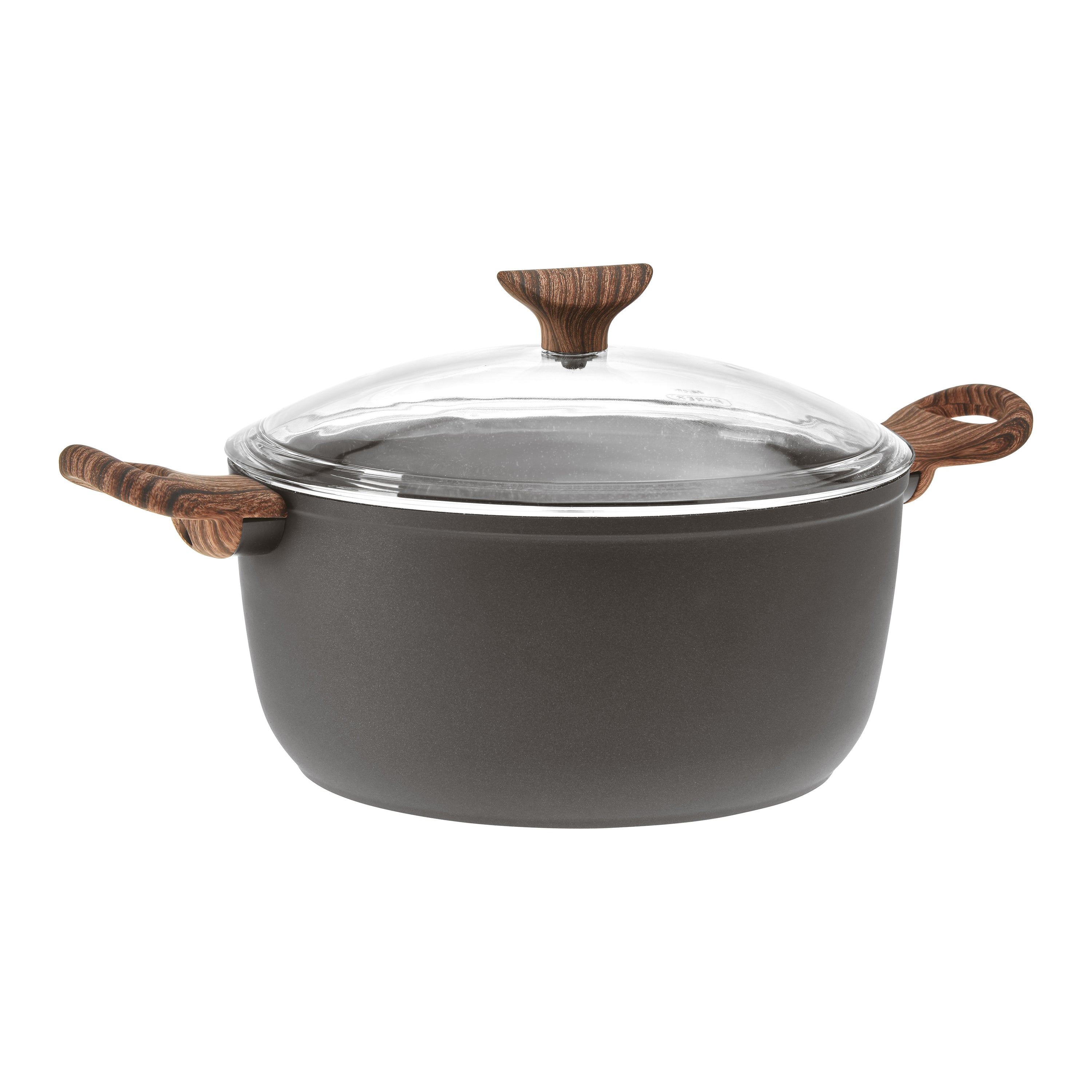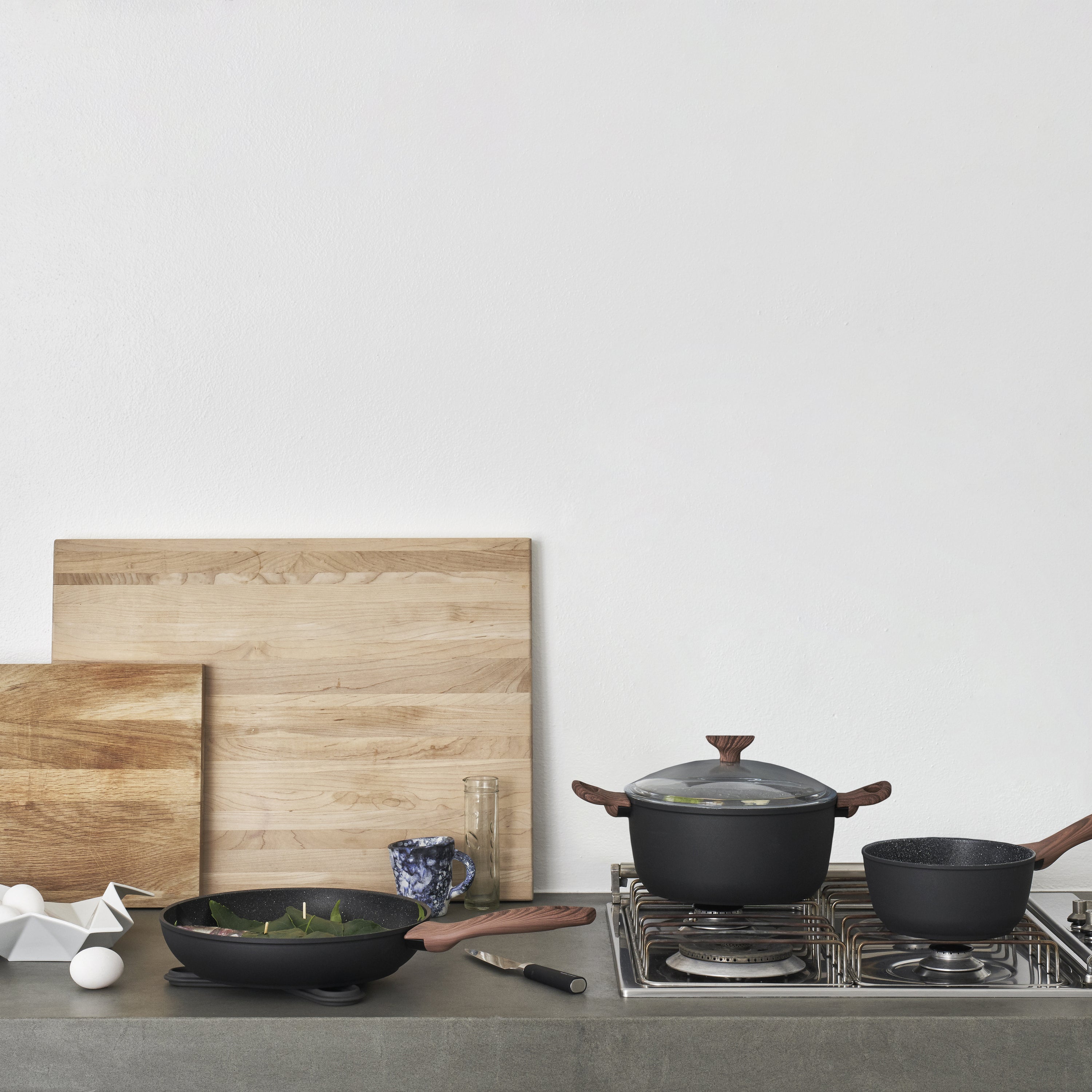De Sambonet pannen zijn gemaakt van gegoten aluminium en hebben een krasbestendige mineralen antibaanbaklaag die vrij is van nikkel, zware metalen en PFOA. De pannen zijn opgebouwd uit vijf lagen: